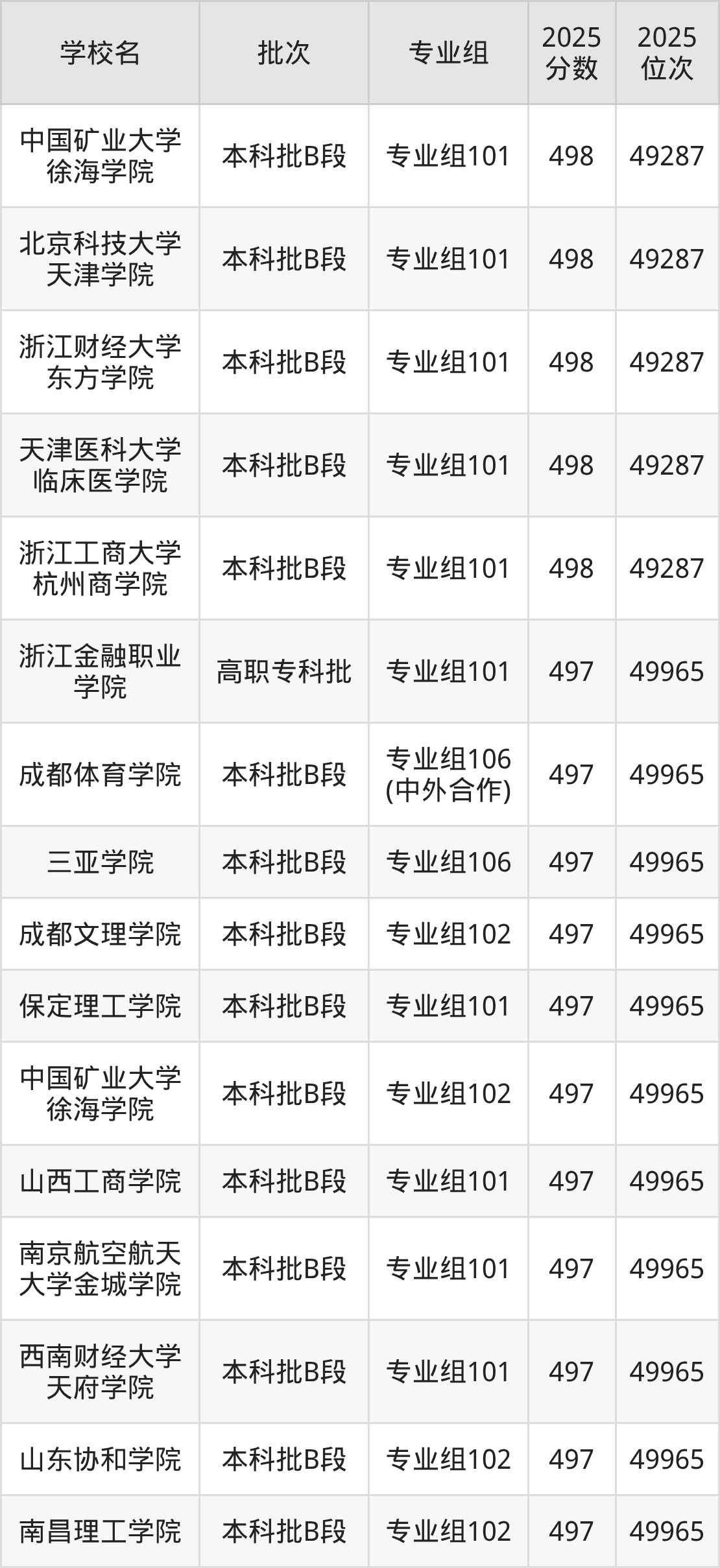 另外录取位次低于该区间(较稳妥)的有宁夏大学新华学院专业组101(50651名)、滇池学院专业组101(50651名)等;录取位次高于该区间(可冲)的有中国矿业大学徐海学院专业组101(49287名)、浙江工商大学杭州商学院专业组101(49287名)等。