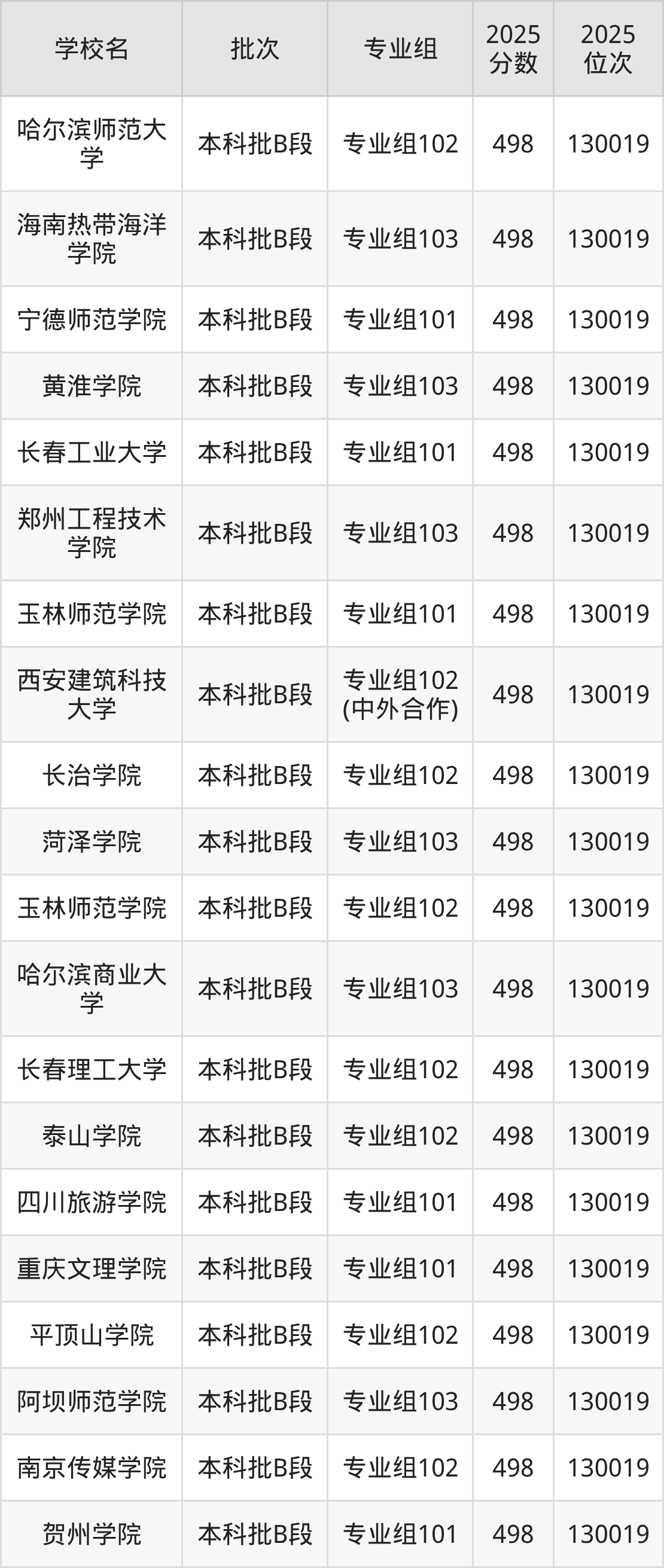 另外录取位次低于该区间(较稳妥)的有河北环境工程学院专业组102(132669名)、新疆工程学院专业组102(132669名)等;录取位次高于该区间(可冲)的有豫章师范学院专业组104(130019名)、浙江万里学院专业组101(130019名)等。