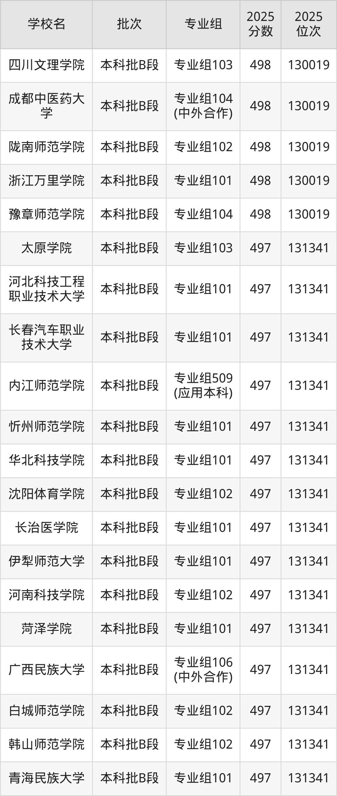 这些都是2026年高考物理类130020名~131341名考生可以报考的大学,更多学校名单如下表所示: