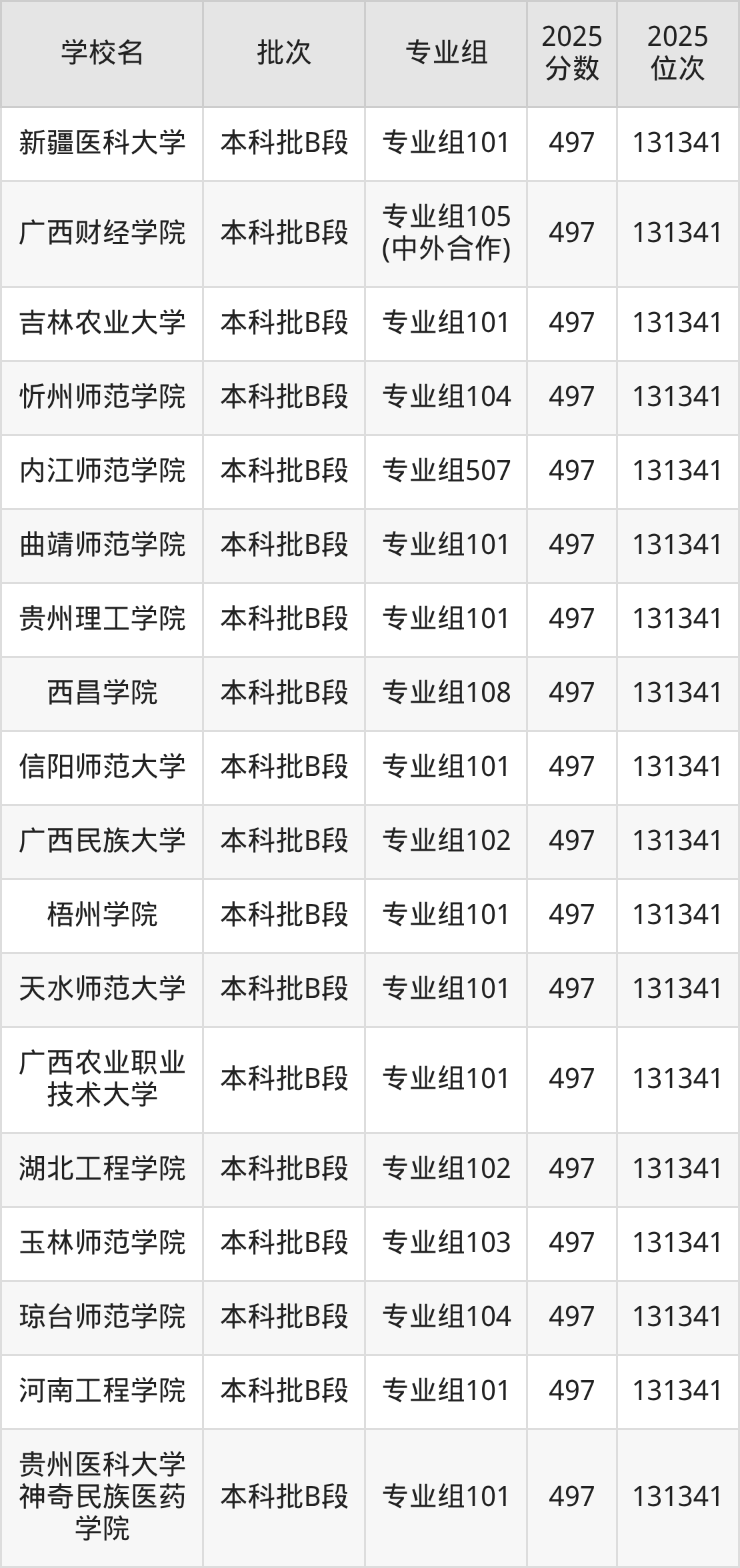 2025年四川高考物理类497分(130020名~131341名)能上的大学有贵州医科大学神奇民族医药学院专业组101、河南工程学院专业组101、琼台师范学院专业组104、玉林师范学院专业组103等。
