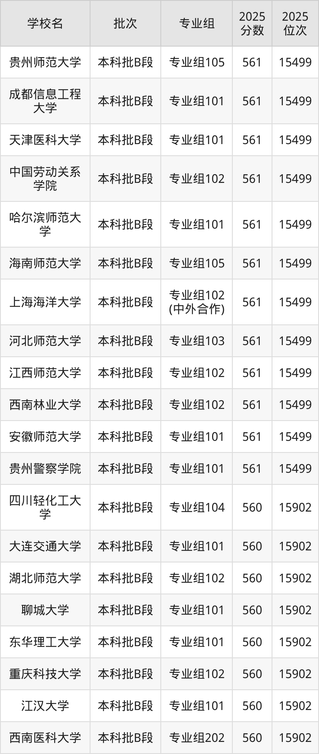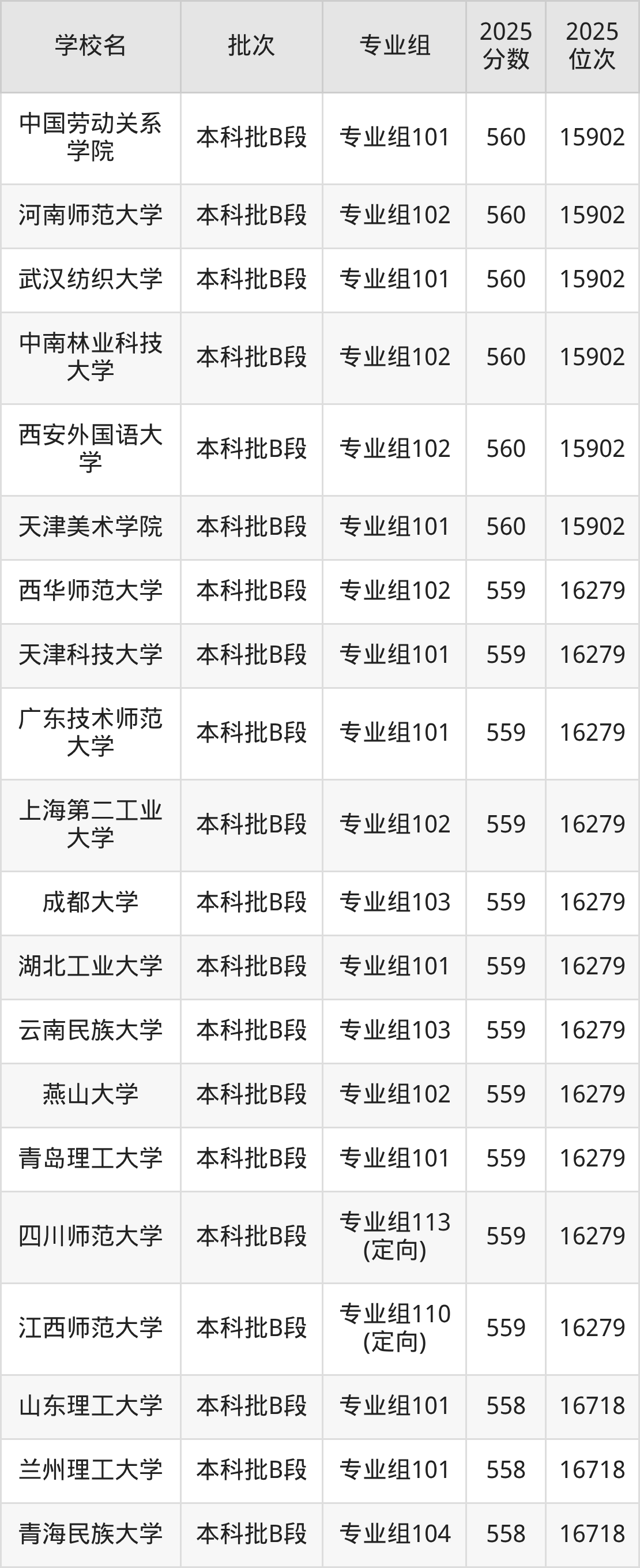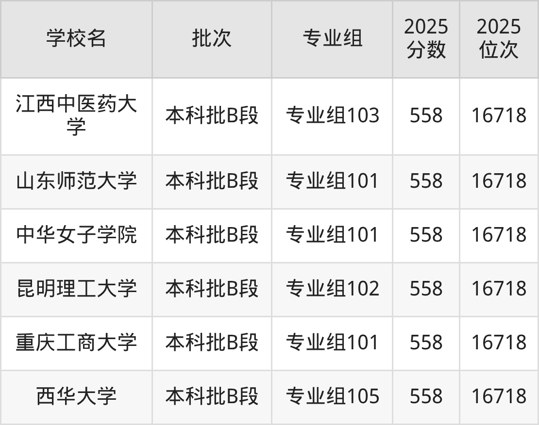 这些都是2026年高考历史类15903名~16279名考生可以报考的大学,更多学校名单如下表所示: