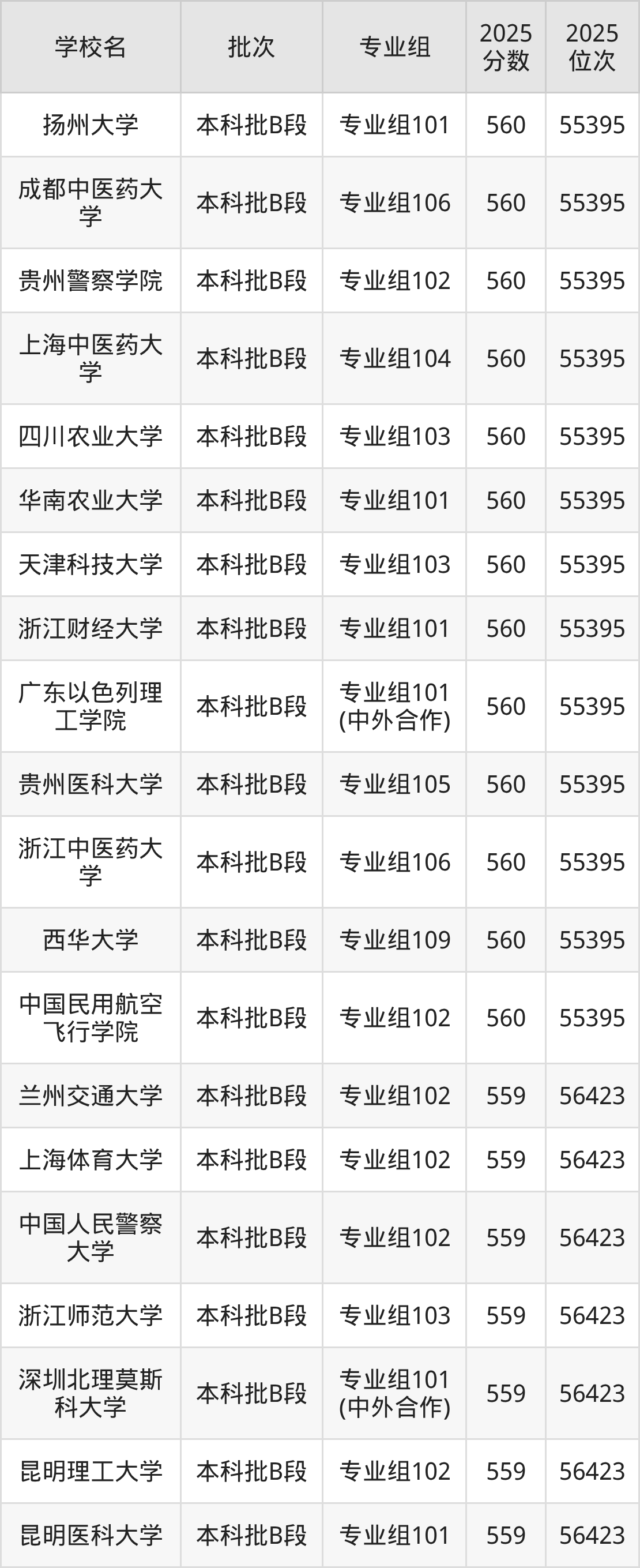 另外录取位次低于该区间(较稳妥)的有广东外语外贸大学专业组102(57388名)、成都医学院专业组103(57388名)等;录取位次高于该区间(可冲)的有四川农业大学专业组103(55395名)、贵州医科大学专业组105(55395名)等。