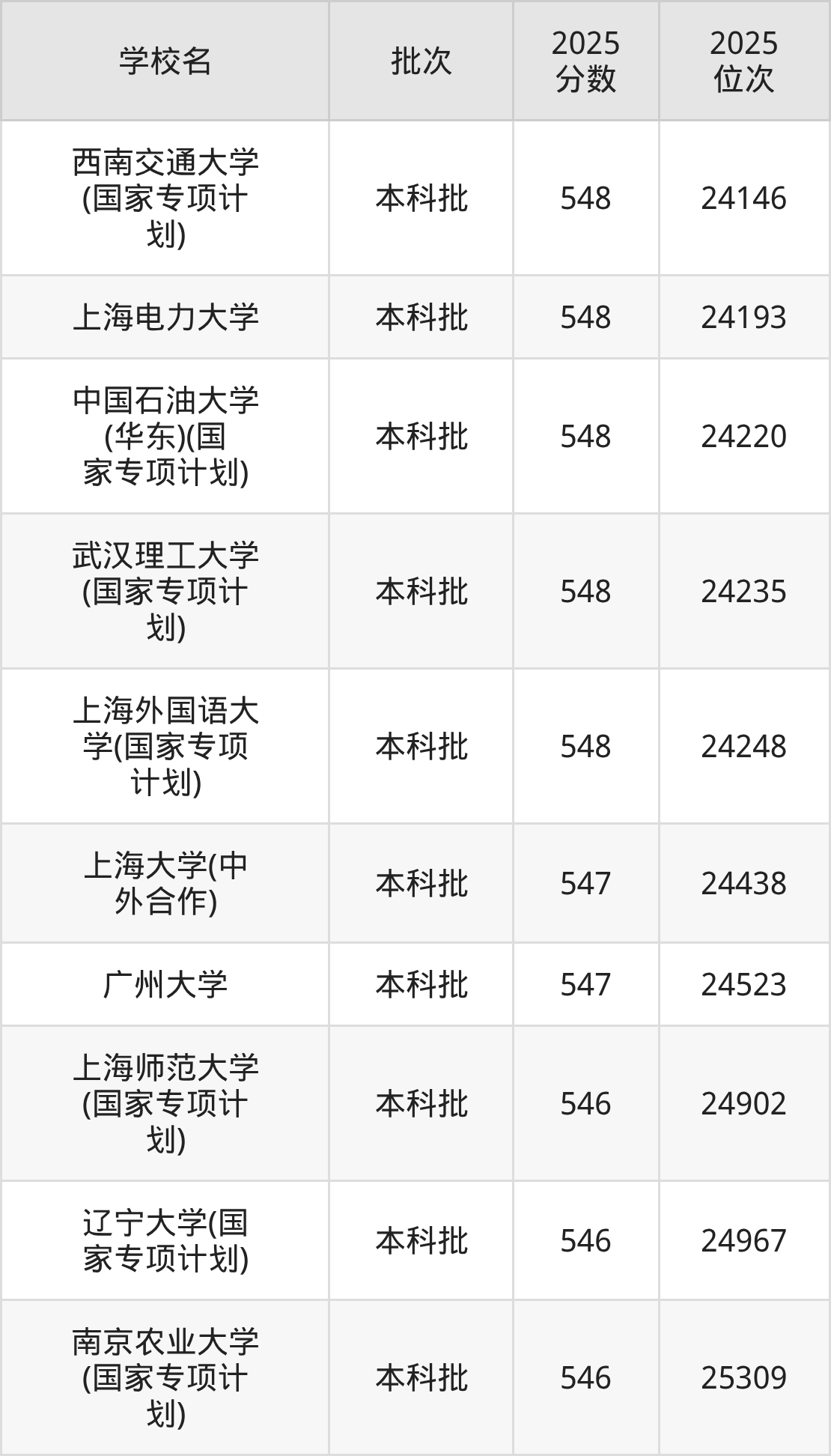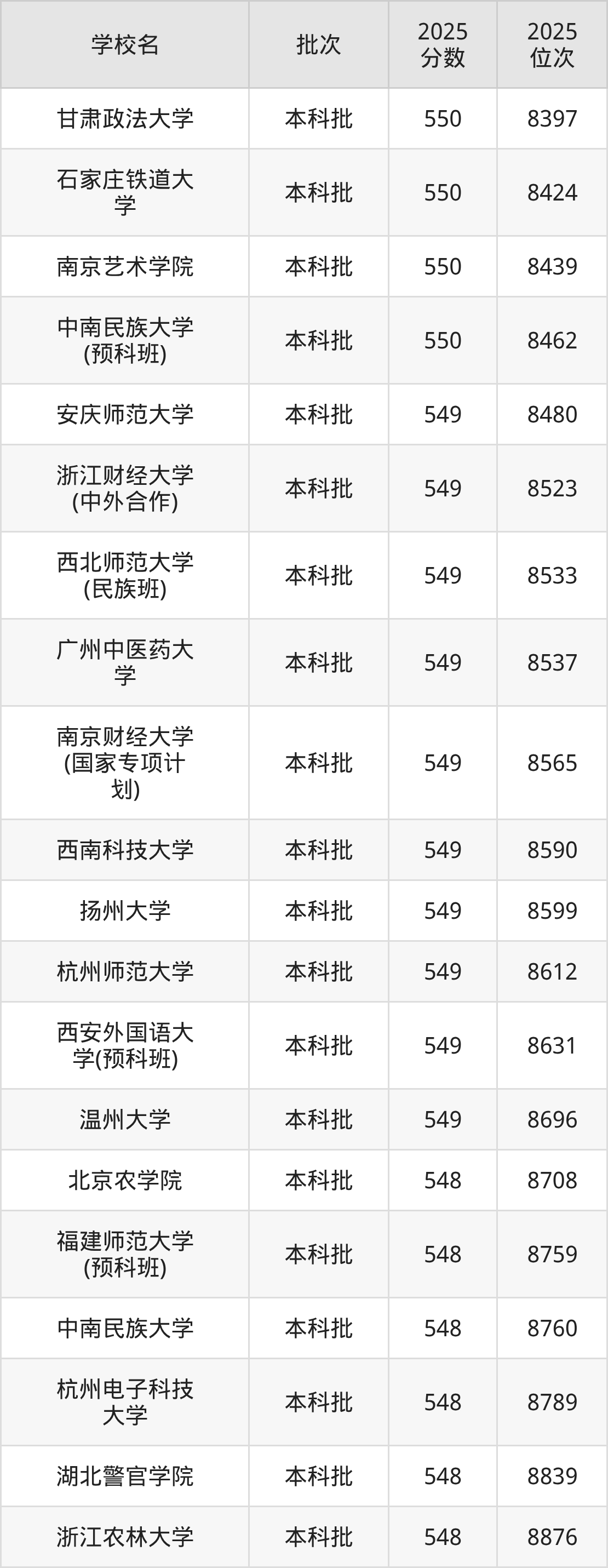 这些都是2026年高考历史类8878名~9052名考生可以报考的大学,更多学校名单如下表所示:
