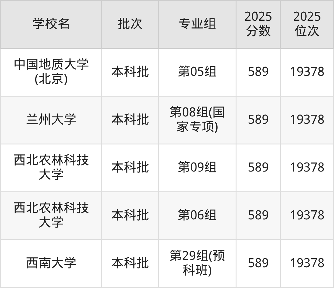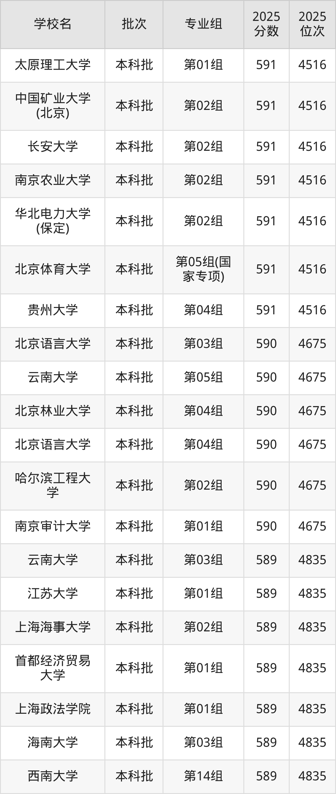 湖北高考589分:历史类排名4835位、物理类排名19378位。该分数位次对应能上的大学历史类有西南大学第14组、首都经济贸易大学第01组;物理类有北京林业大学第10组、华北电力大学第05组(国家专项),更多名单如下文所示,2026届考生可参考。