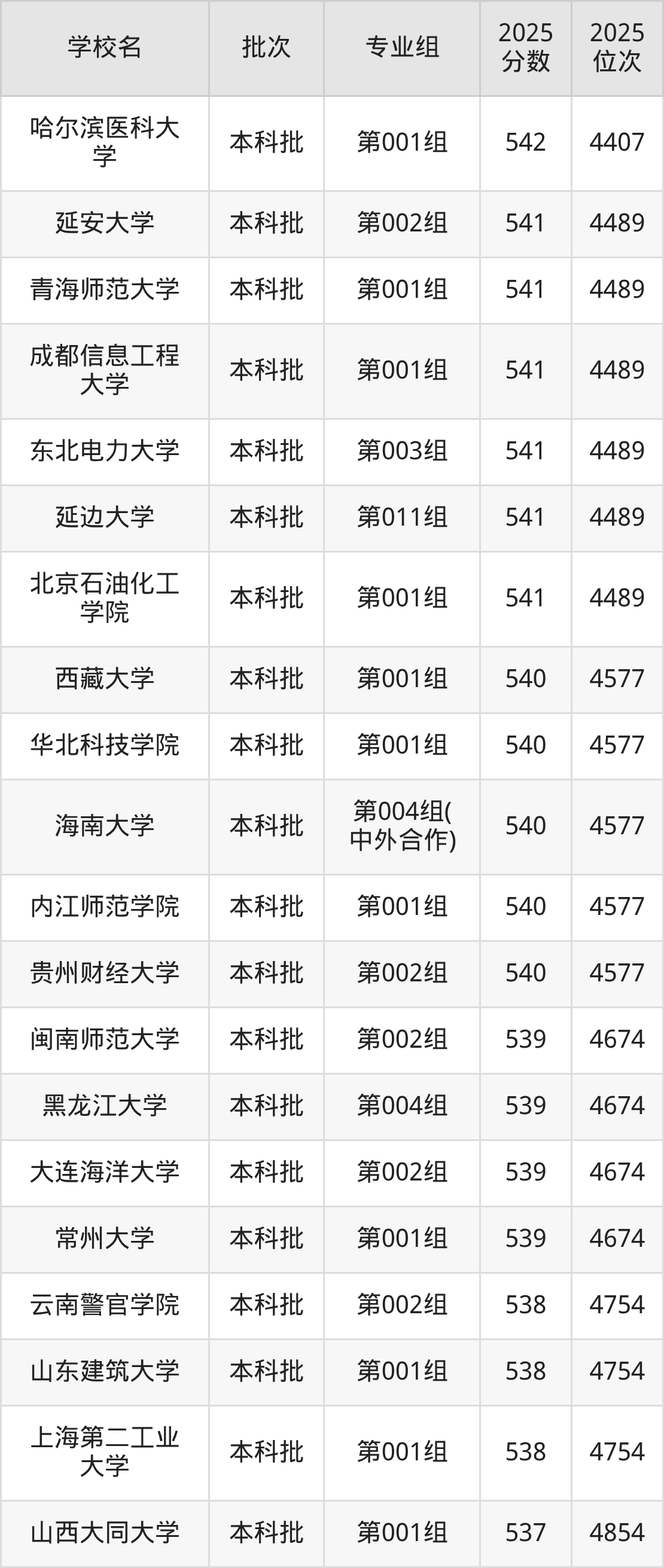 2025年吉林高考历史类539分排名位次区间是:4578名~4674名。