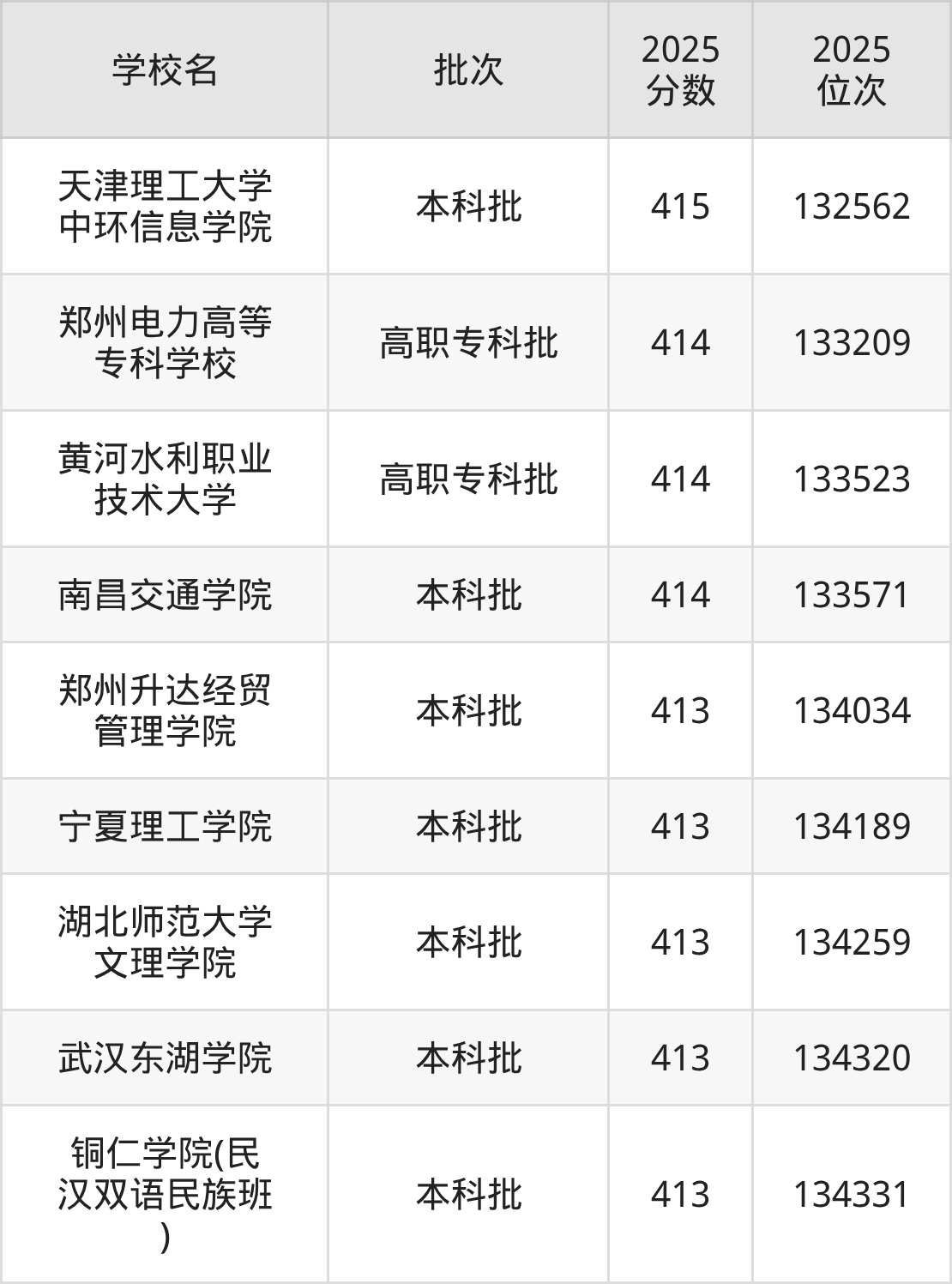2025年贵州高考物理类414分(132876名~133921名)能上的大学有郑州电力高等专科学校、黄河水利职业技术大学、南昌交通学院。