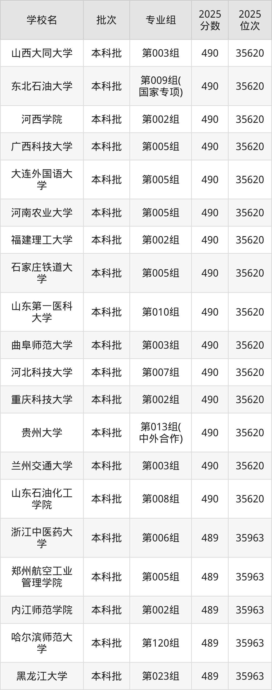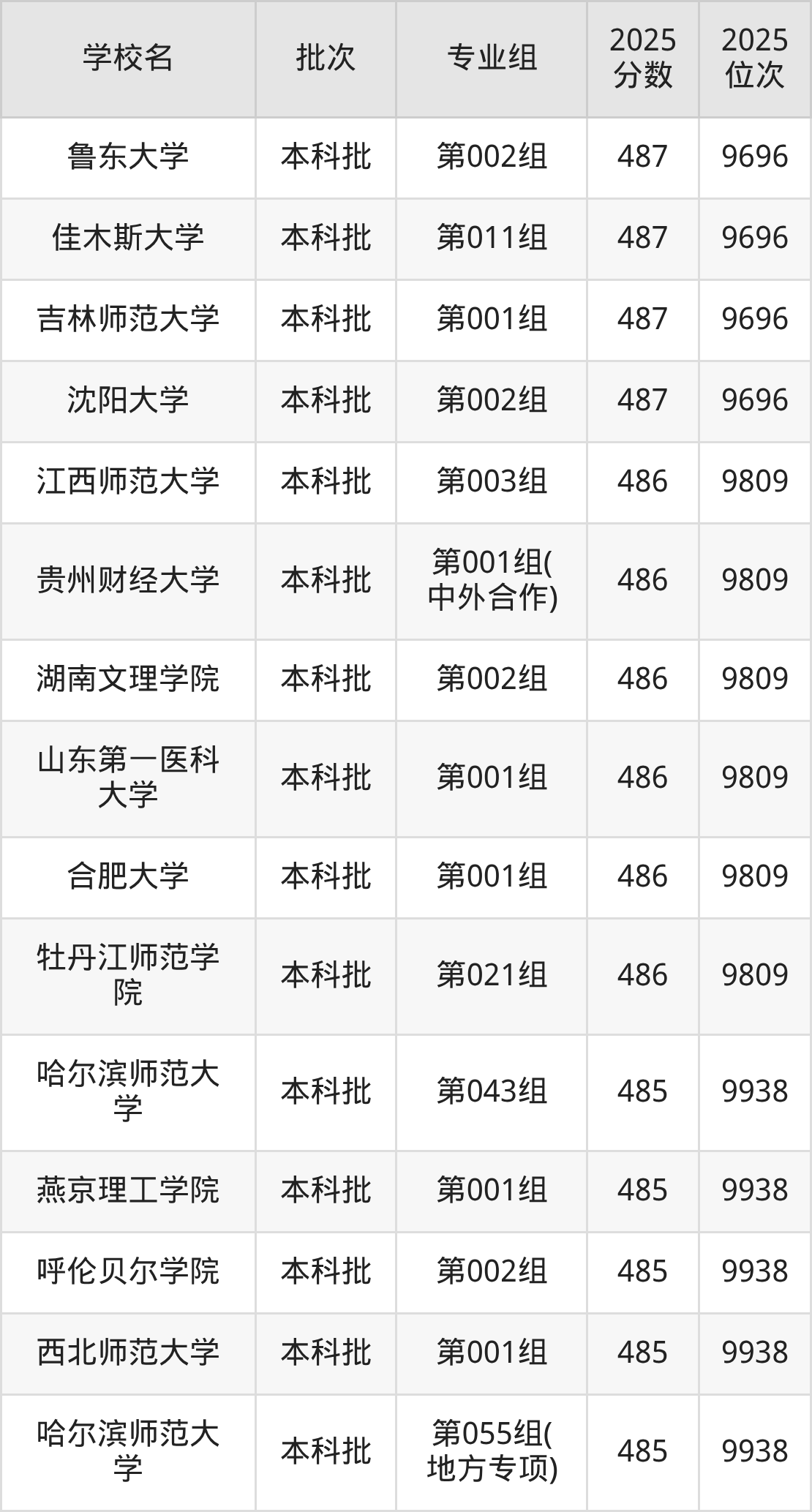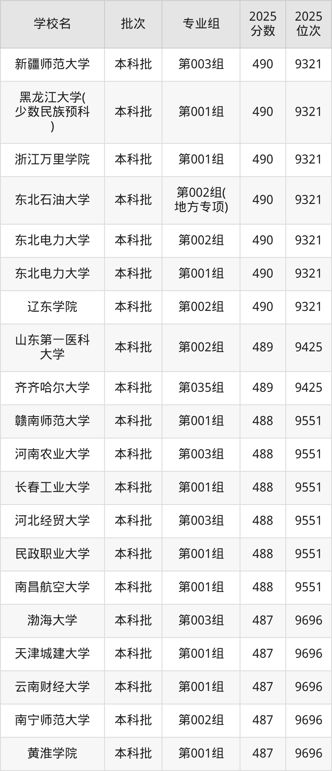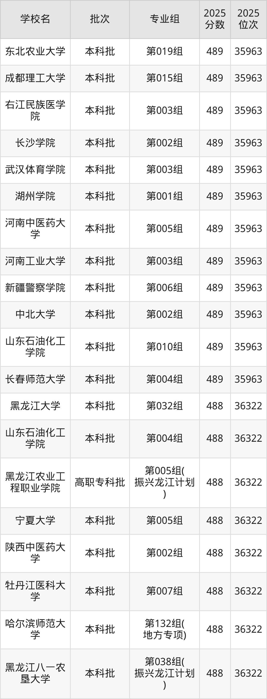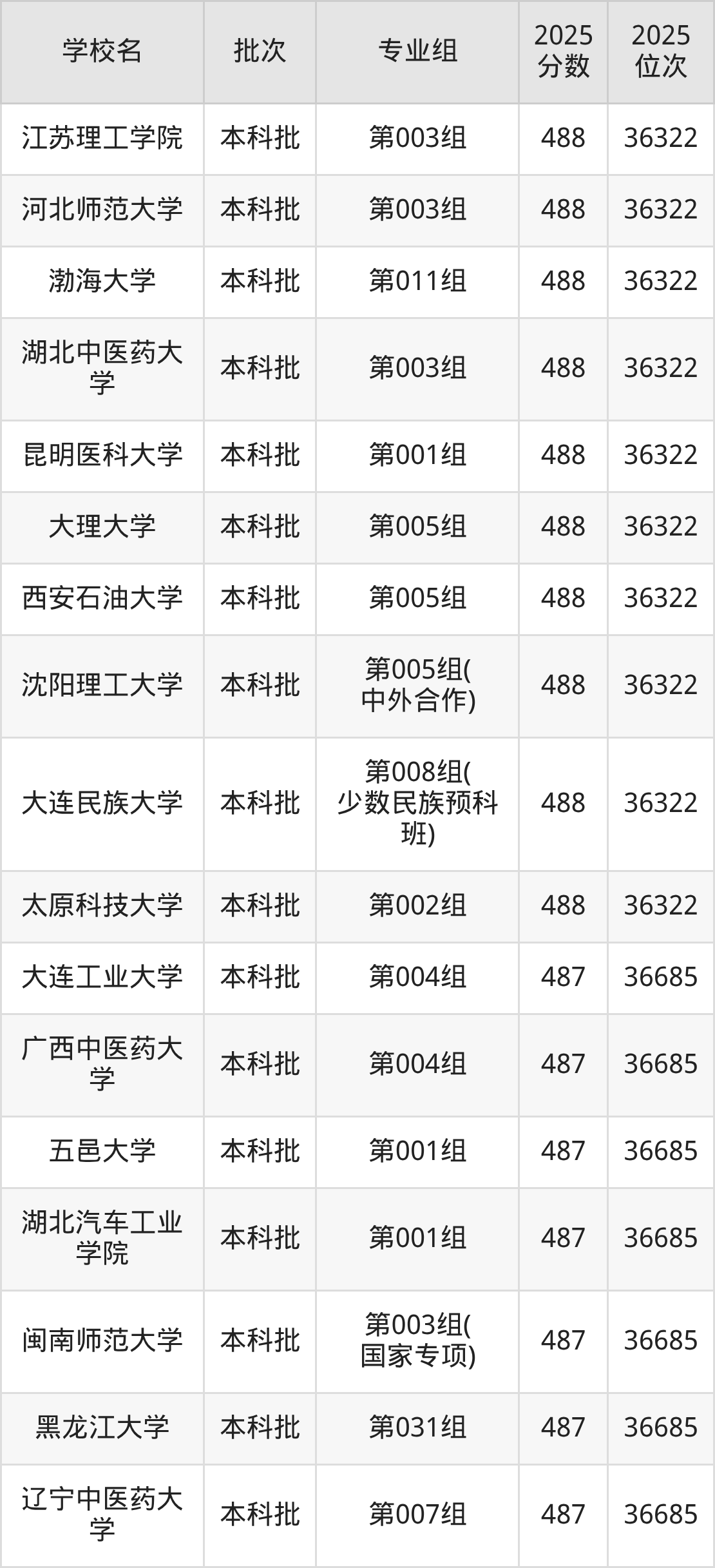 2025年黑龙江高考物理类488分(35964名~36322名)能上的大学有河北师范大学第003组、太原科技大学第002组、大连民族大学第008组(少数民族预科班)、沈阳理工大学第005组(中外合作)等。