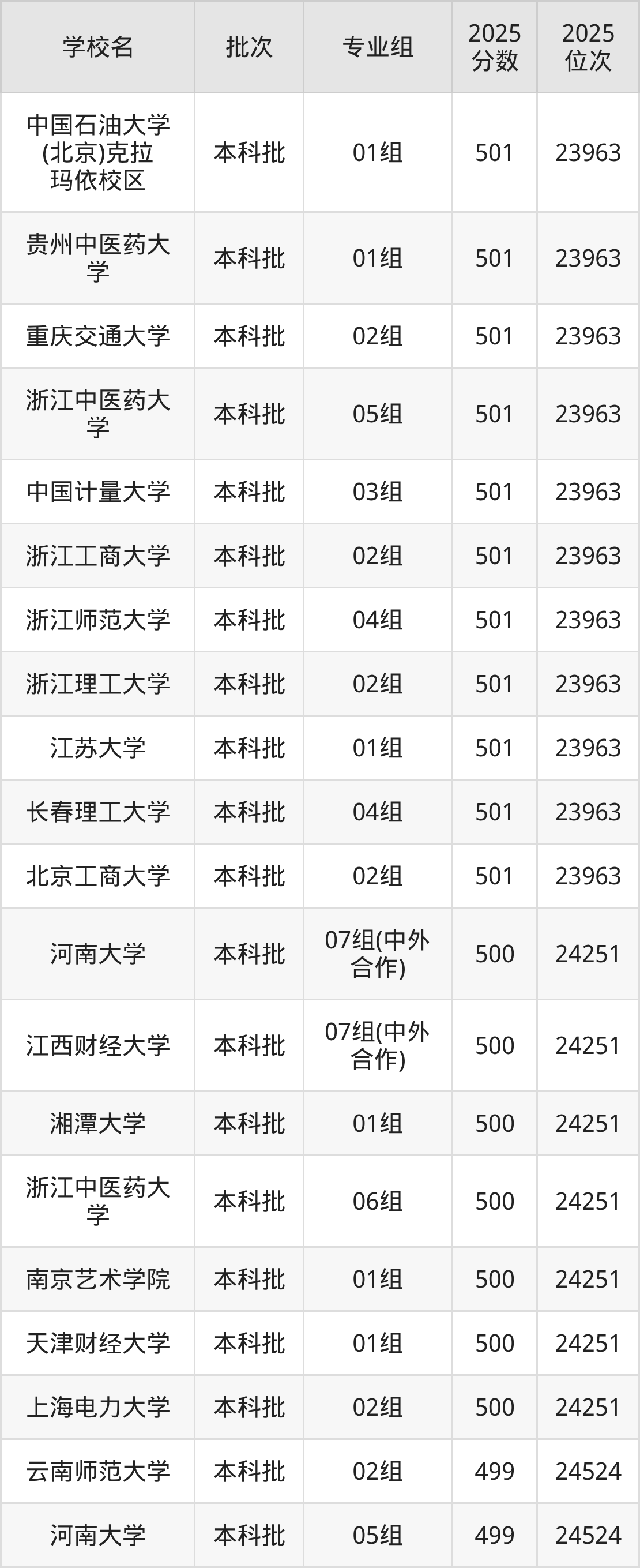 这些都是2026年高考24252名~24524名考生可以报考的大学,更多学校名单如下表所示: