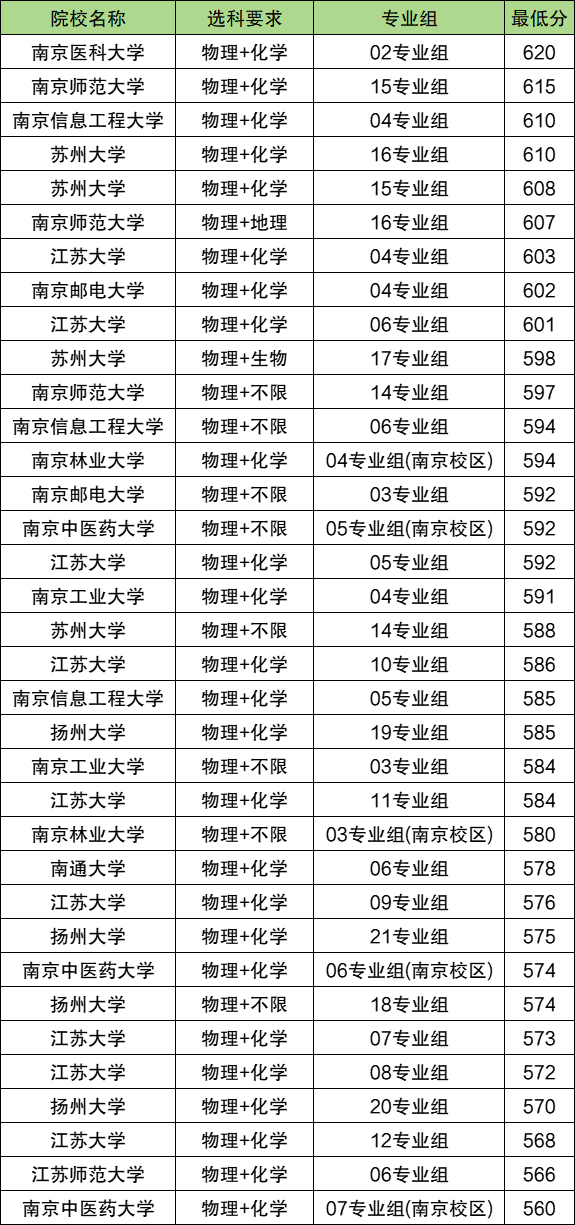 2025年江苏地方专项物理类录取分数线位于560分到620分之间,收分最低的是南京中医药大学07展业组(南京校区),收分最高的是南京医科大学02专业组,各学校具体分数线如下。