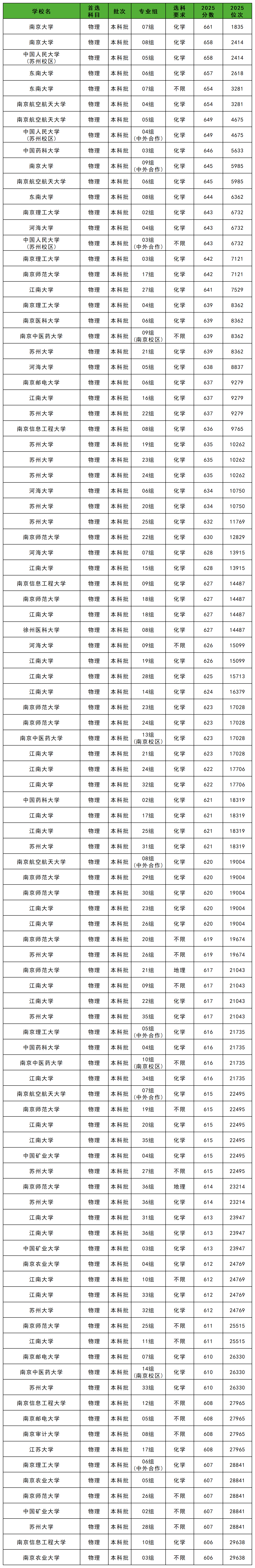 想要知道2026年该填报哪所大学,需要了解往年大学在江苏的最低录取分数线及位次情况,碍于篇幅限制,本文仅收集了2025年江苏省内公办大学招收物理类本科生的最低分数线及位次信息(分数线TOP100专业组)。