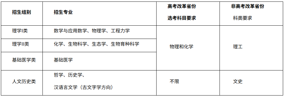 学校强基计划招生专业为分别用一句话介绍以下专业:汉语言文学(古文字学方向)、历史学、哲学、数学与应用数学、物理学、工程力学、化学、生物科学、生态学、生物育种科学、基础医学。