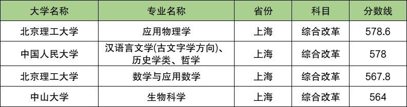 2024年上海市入围分数在570分左右的强基大学共有3所,其中北京理工大学对应招生专业为应用物理学,对应最低入围分数为578.6分。