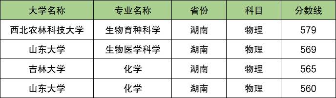 2024年湖南省入围分数在570分左右的强基大学共有3所,其中西北农林科技大学对应招生专业为生物育种科学,对应最低入围分数为579分。