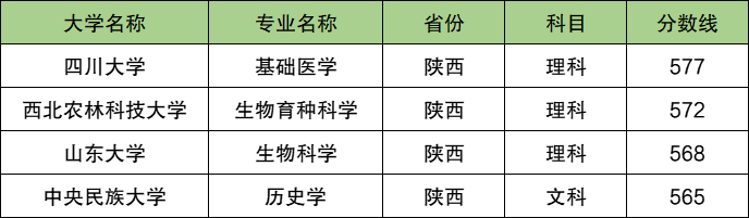 2024年陕西省入围分数在570分左右的强基大学共有4所,其中四川大学对应招生专业为基础医学,对应最低入围分数为577分。