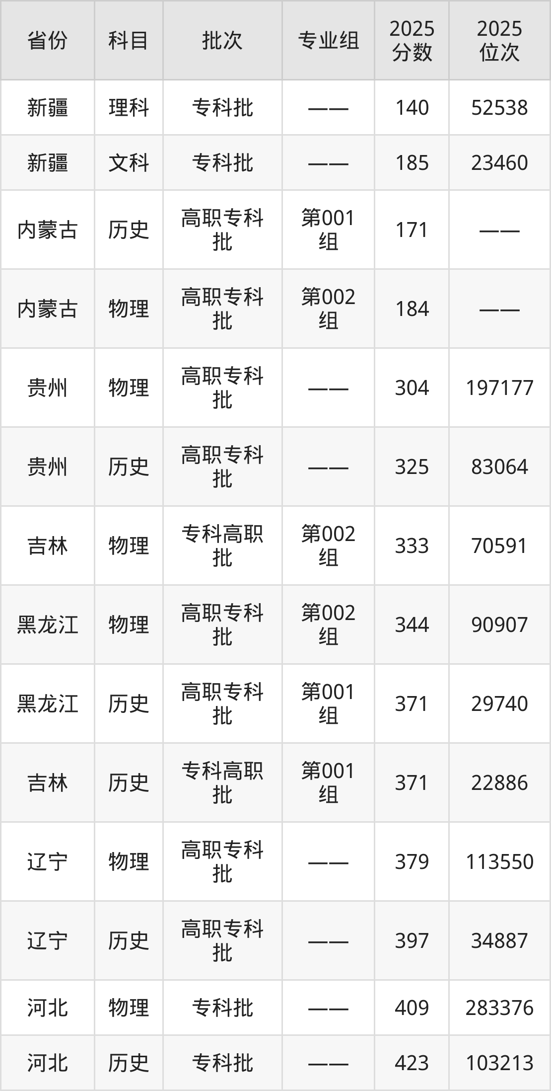 2025年通辽职业学院在各省物理类和理科的录取分数线位于140分-409分之间。