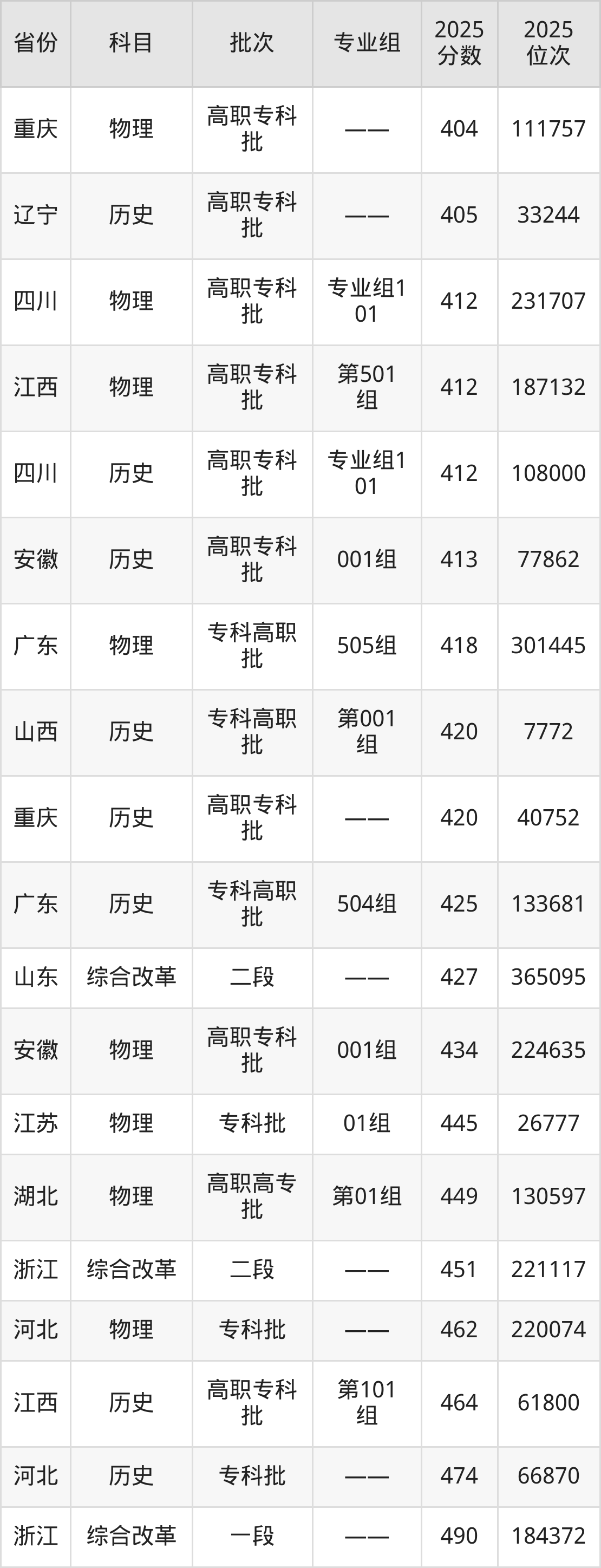 最高录取分数线是490分,对应位次是184372名,招生地区为浙江。