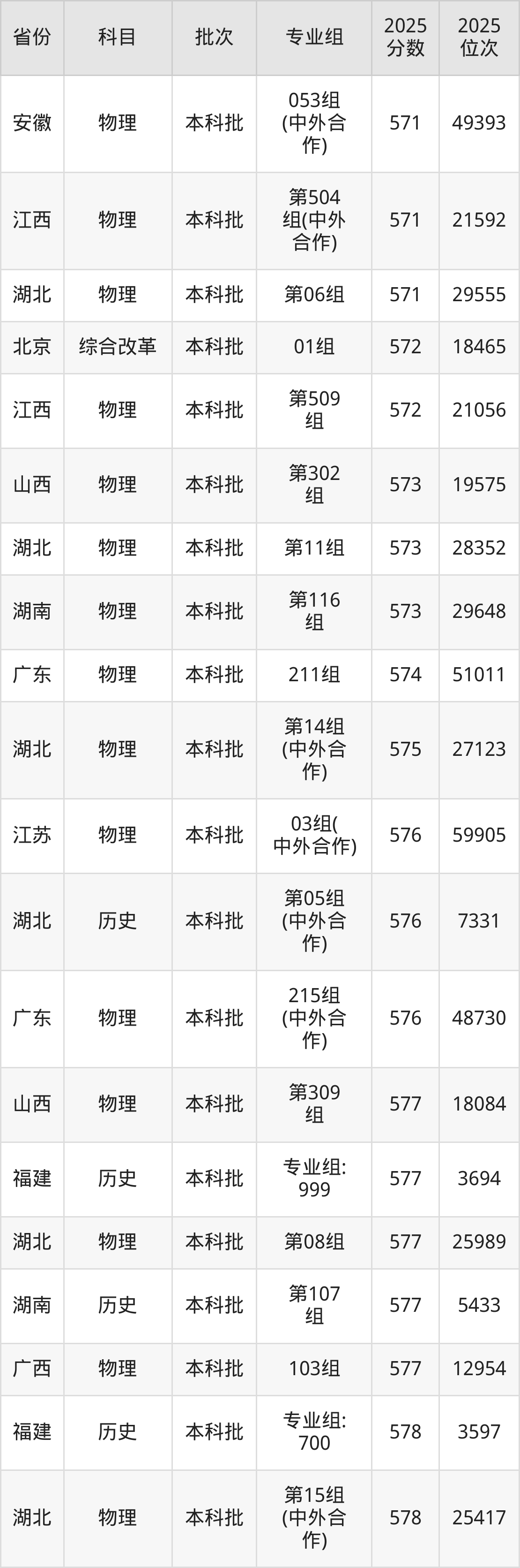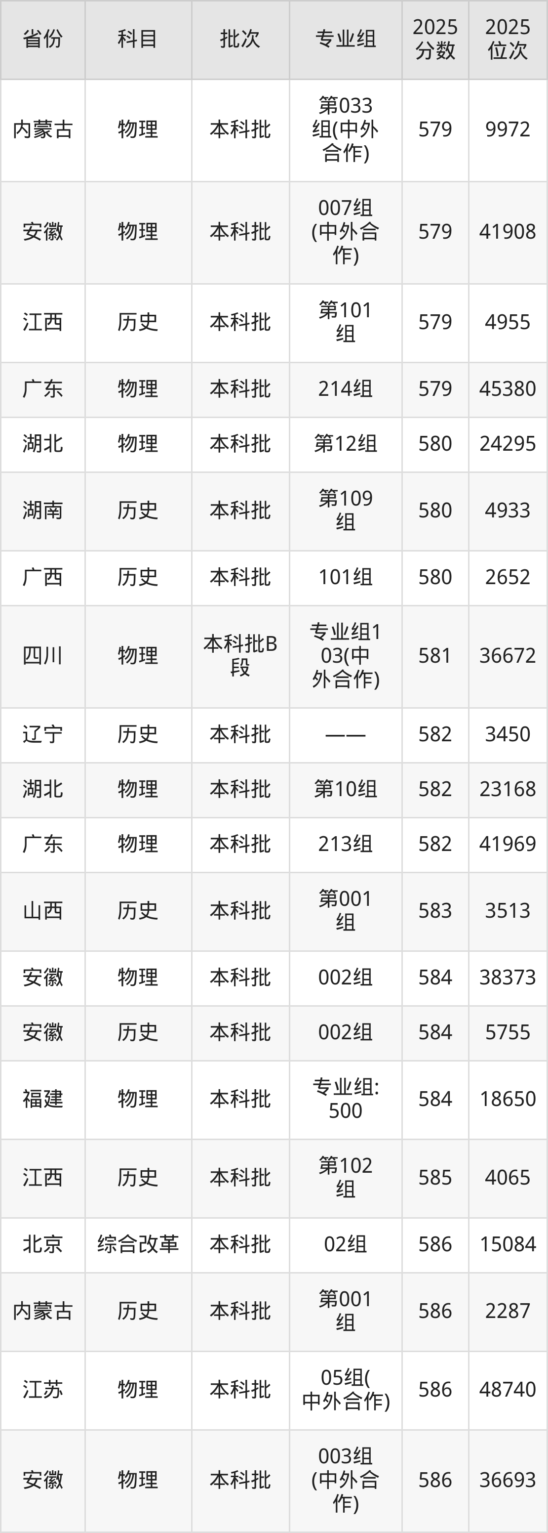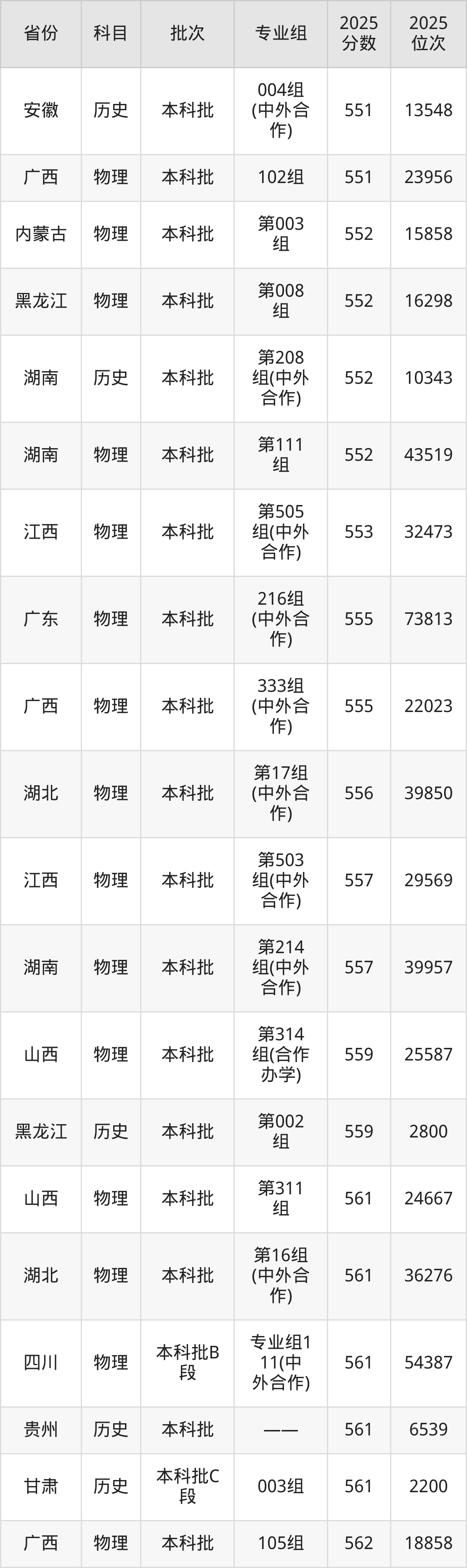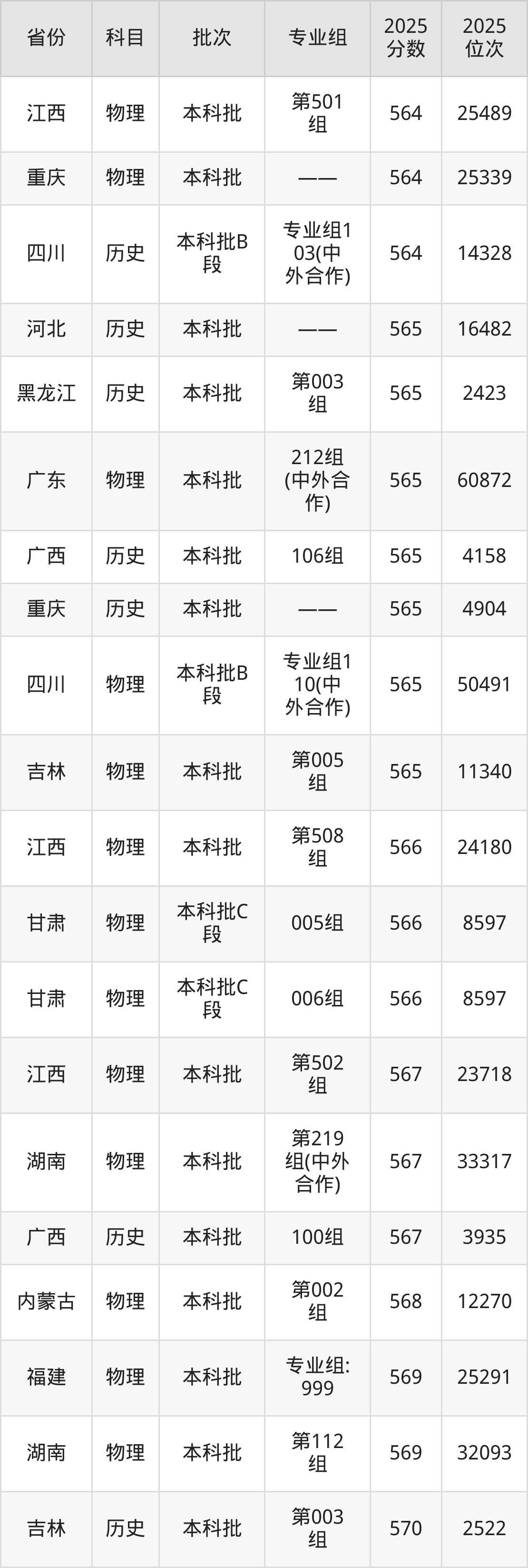 2025年贵州大学在各省普通批录取分数线一览表: