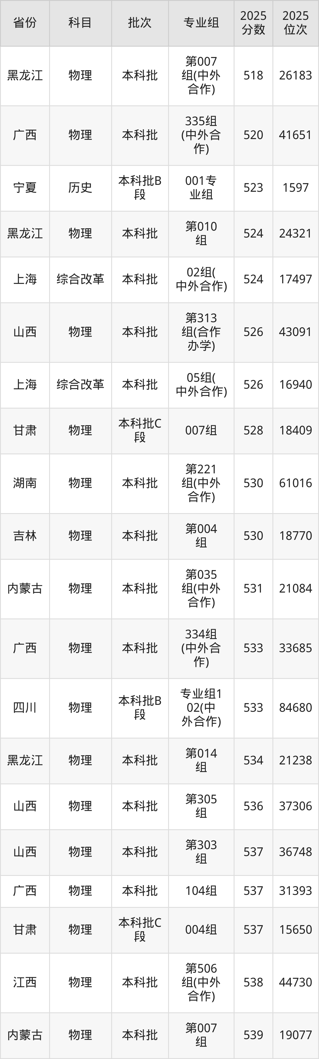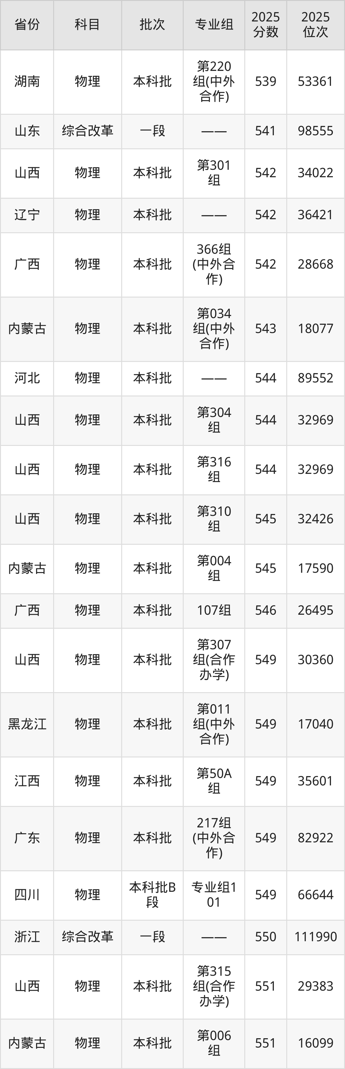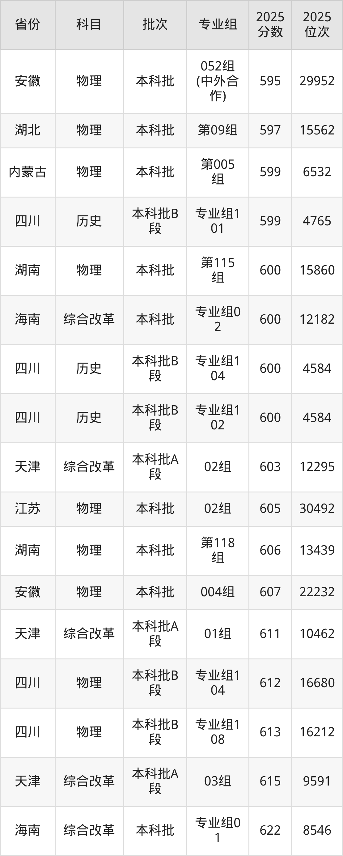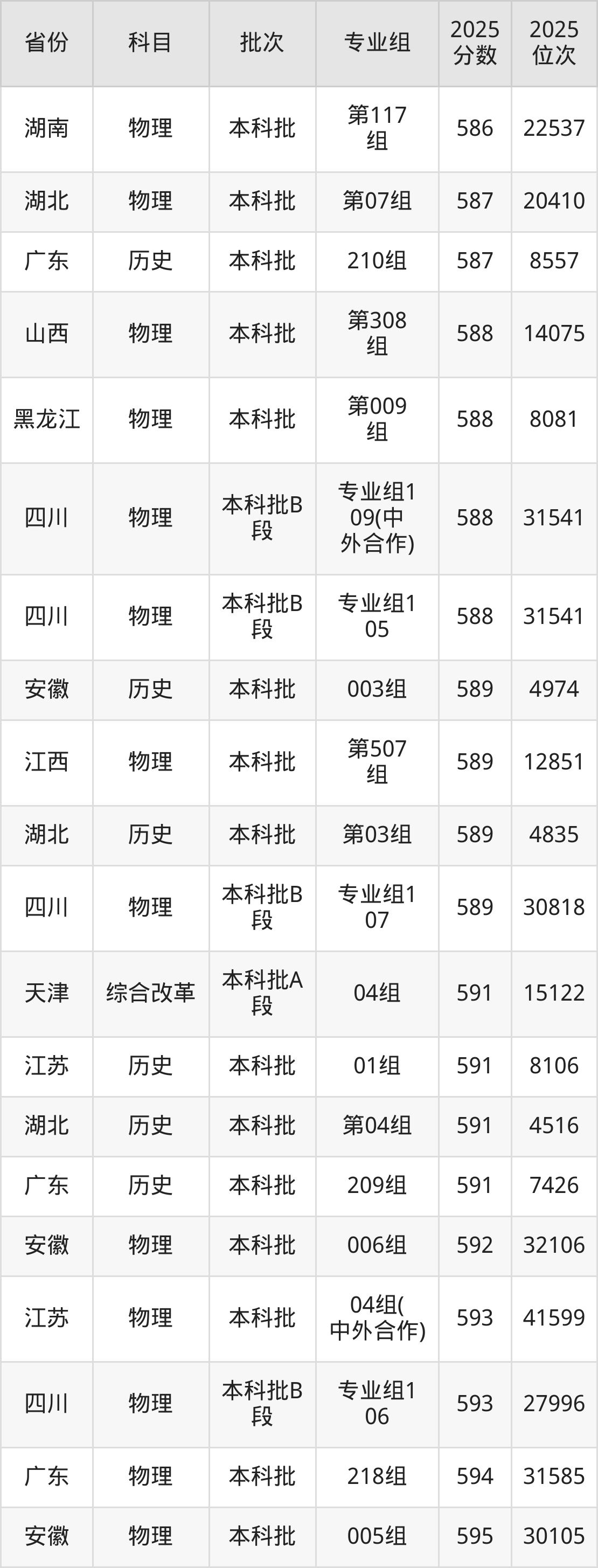 2025年贵州大学在各省普通批录取分数线一览表: