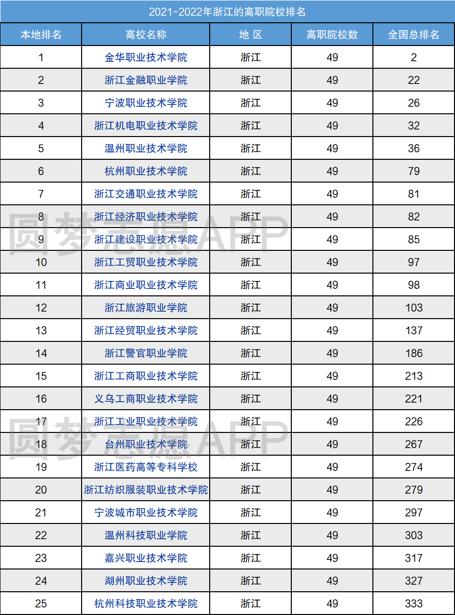 一、浙江大专排名2021最新排名
