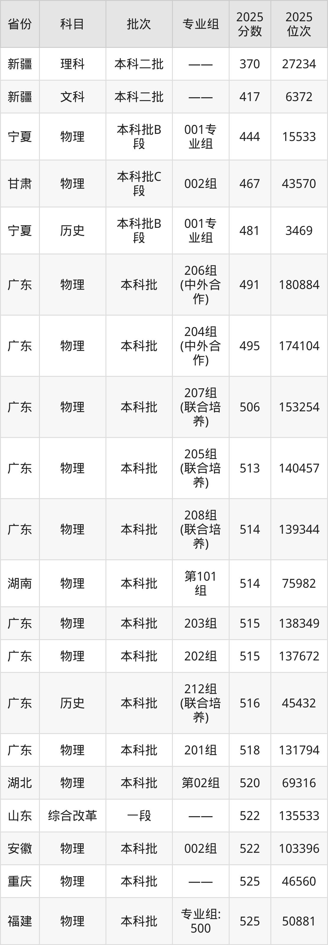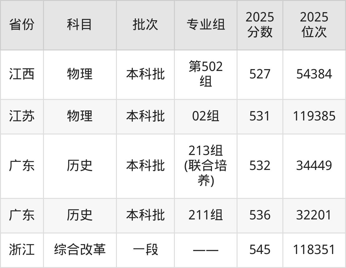 最高录取分数线是536分,对应位次是32201名,招生地区为广东。