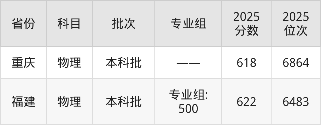最低录取分数线是618分,对应位次是6864名,招生地区为重庆;