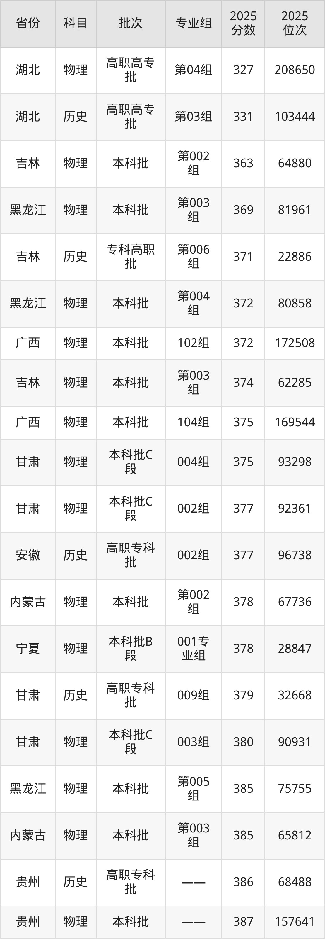 最低录取分数线是164分,对应位次是52432名,招生地区为新疆;