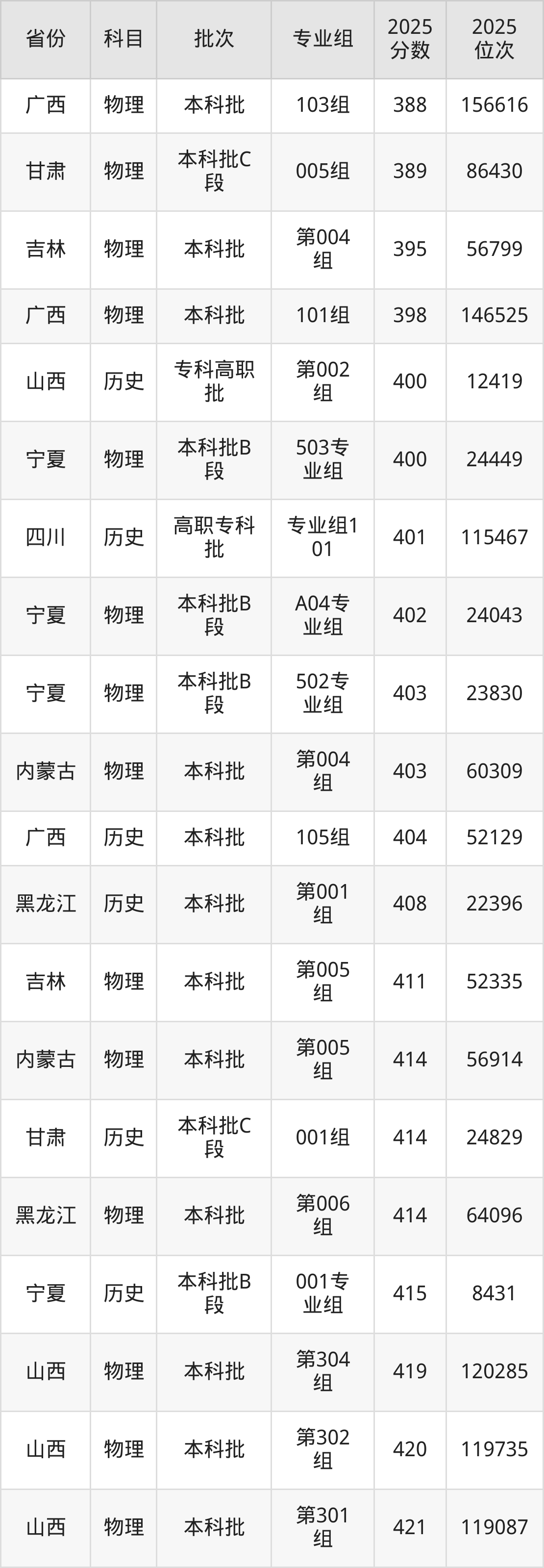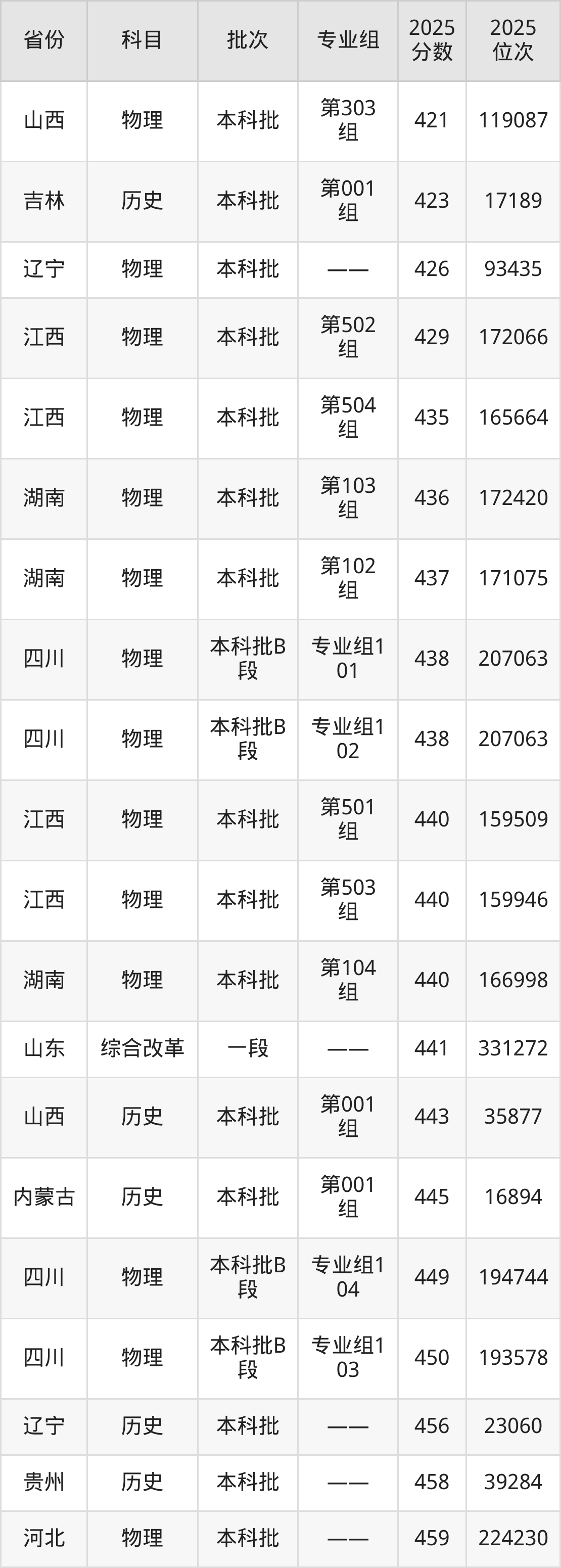 最低录取分数线是441分,对应位次是331272名,招生地区为山东;