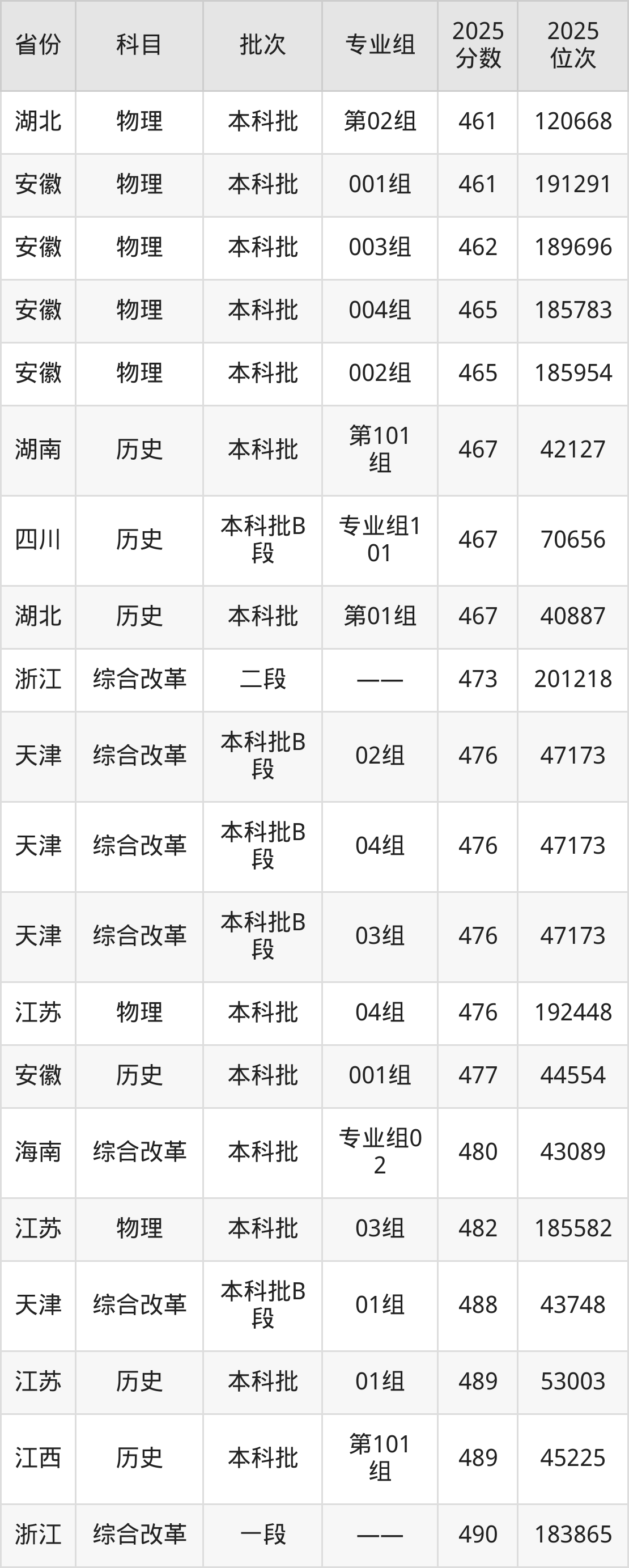 最高录取分数线是482分,对应位次是185582名,招生地区为江苏。