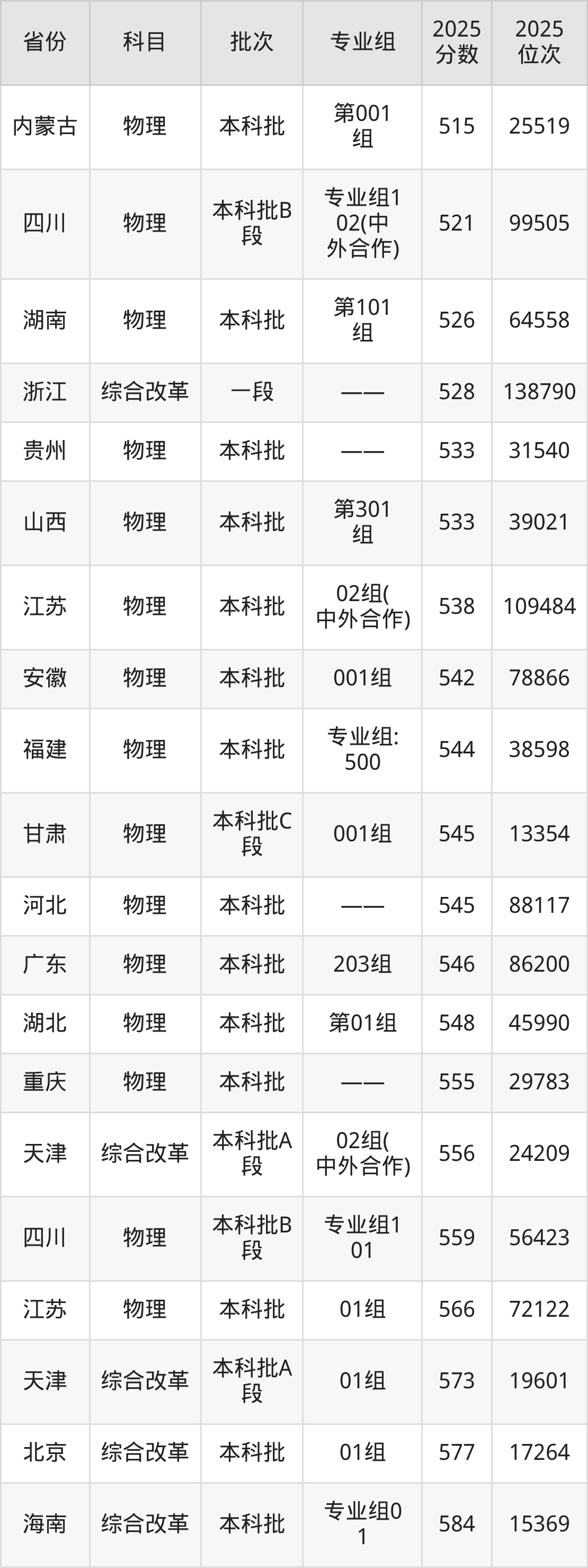 2025年昆明医科大学在各省普通批录取分数线一览表: