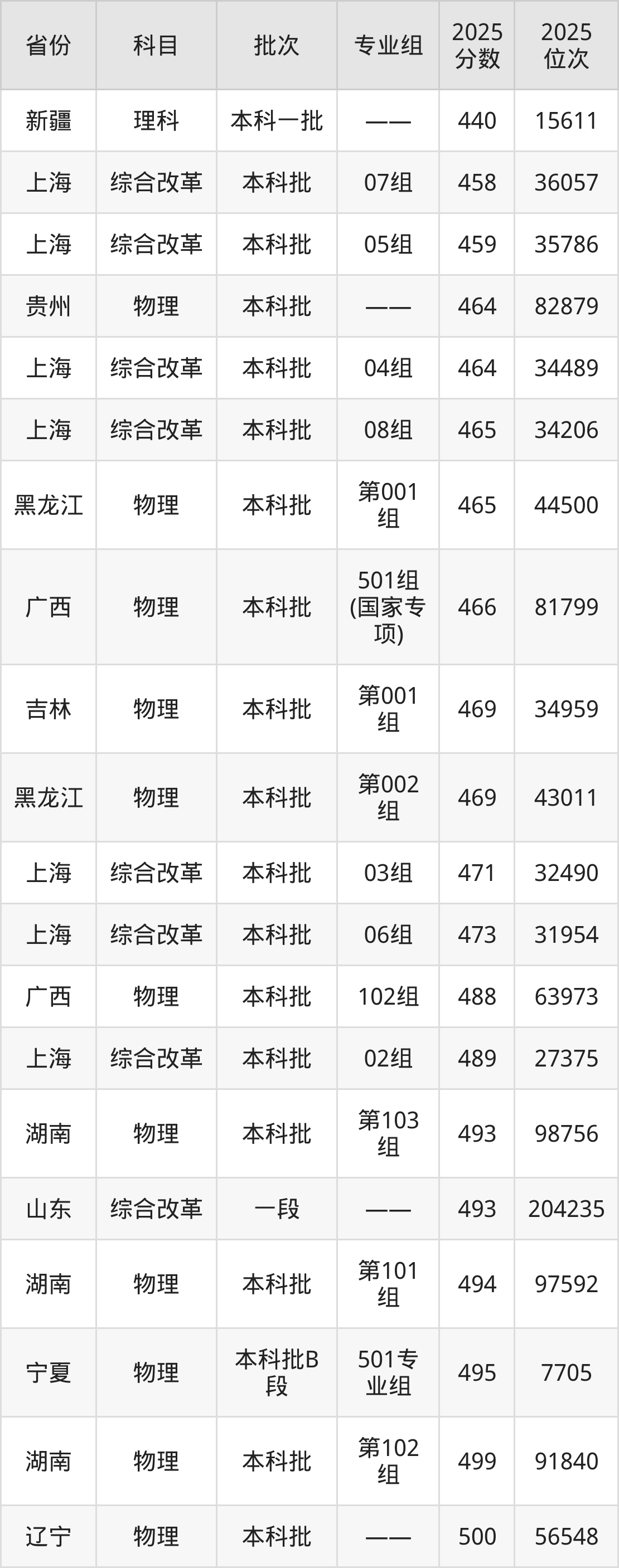 最低录取分数线是440分,对应位次是15611名,招生地区为新疆;