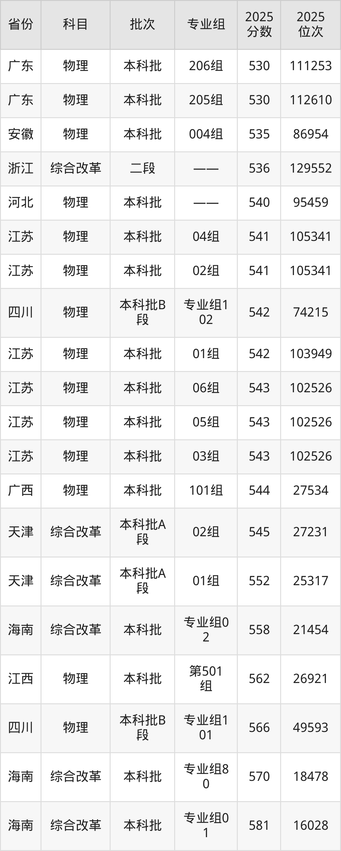 最高录取分数线是581分,对应位次是16028名,招生地区为海南。