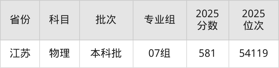 最高录取分数线是581分,对应位次是54119名,招生地区为江苏。