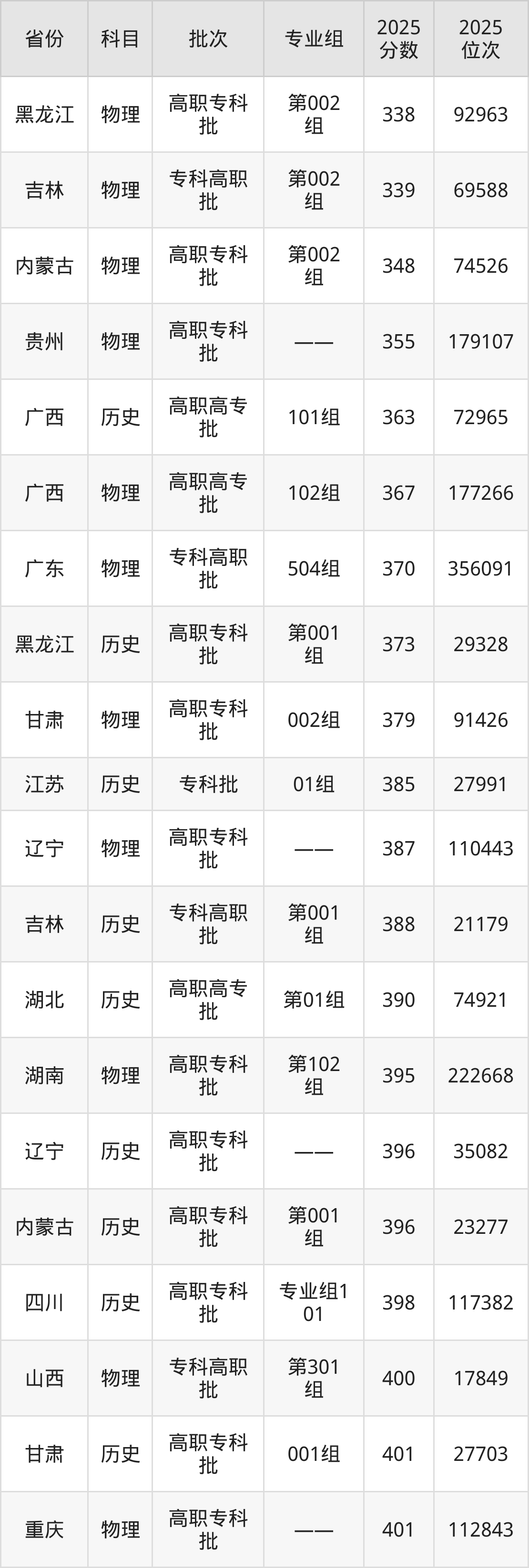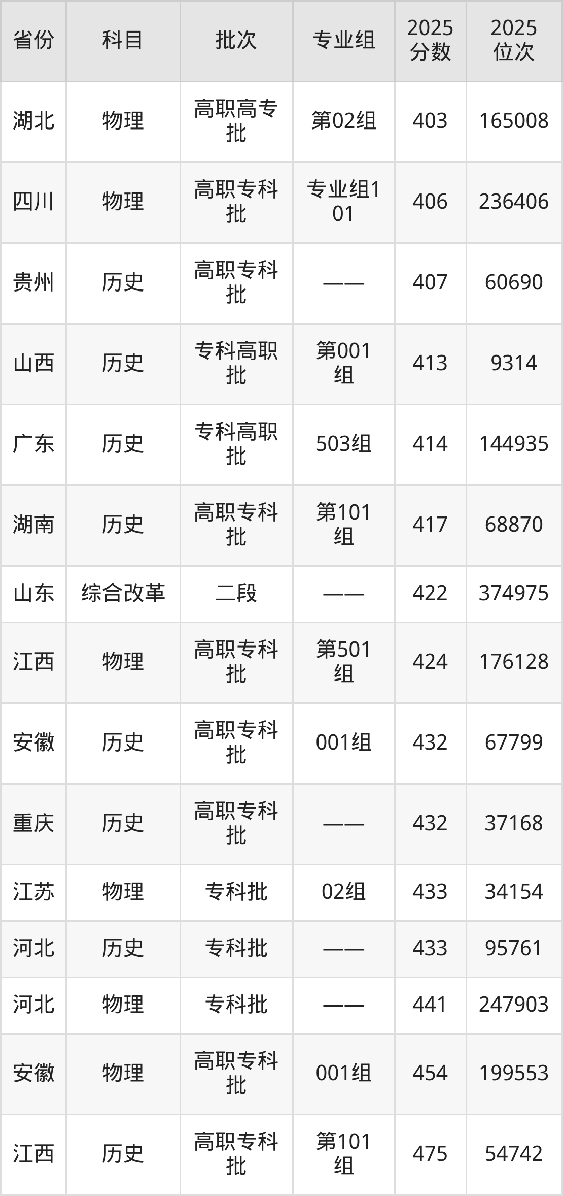 2025年湖南邮电职业技术学院在各省物理类的录取分数线位于338分-454分之间。