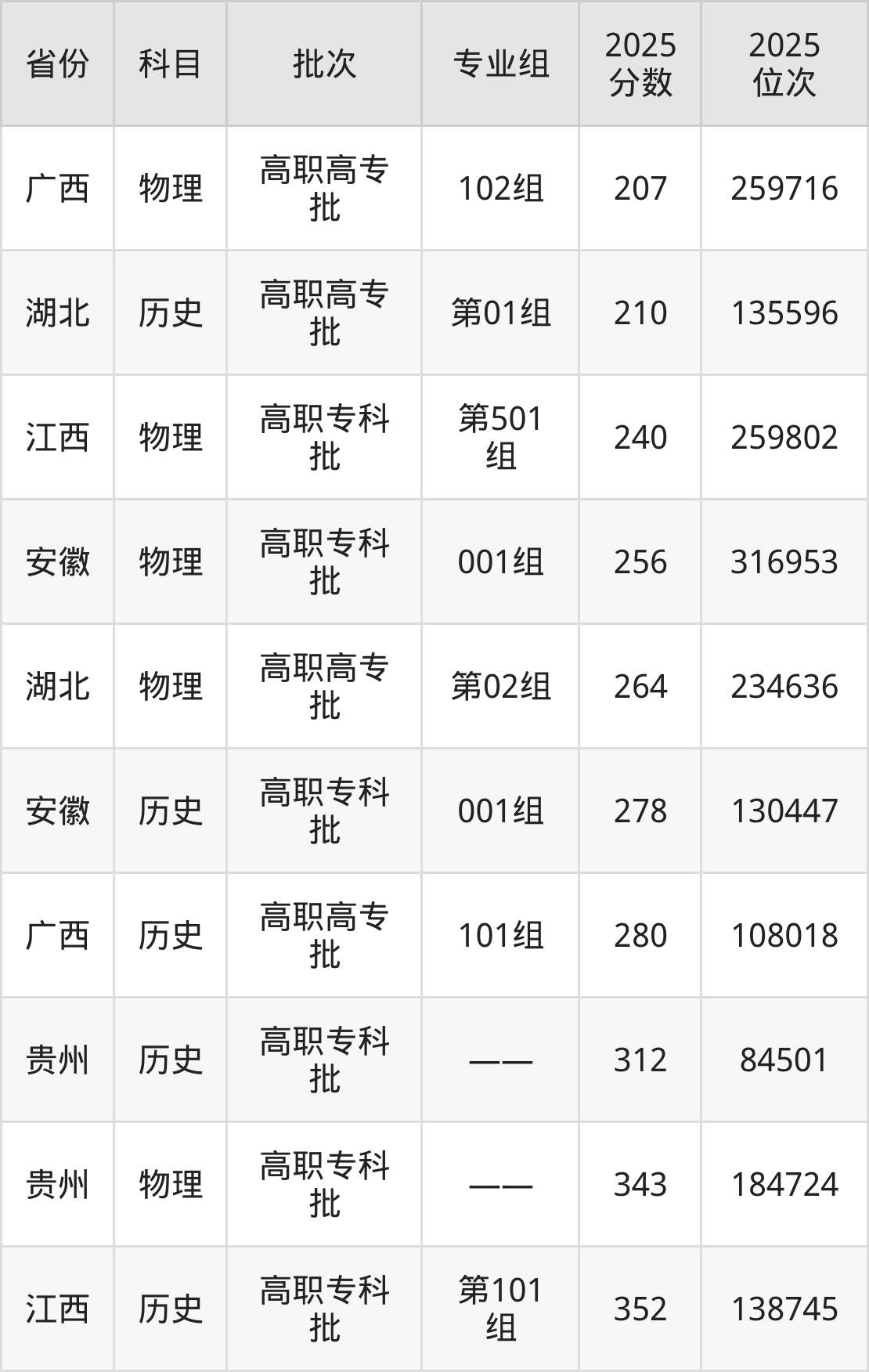最低录取分数线是207分,对应位次是259716名,招生地区为广西;