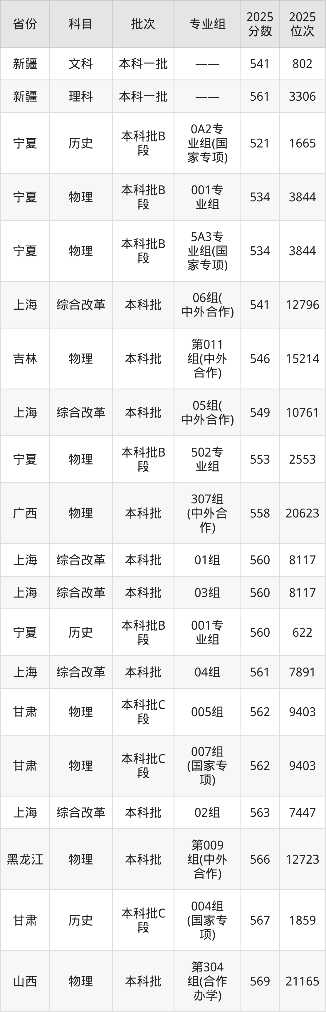 最低录取分数线是541分,对应位次是12796名,招生地区为上海;