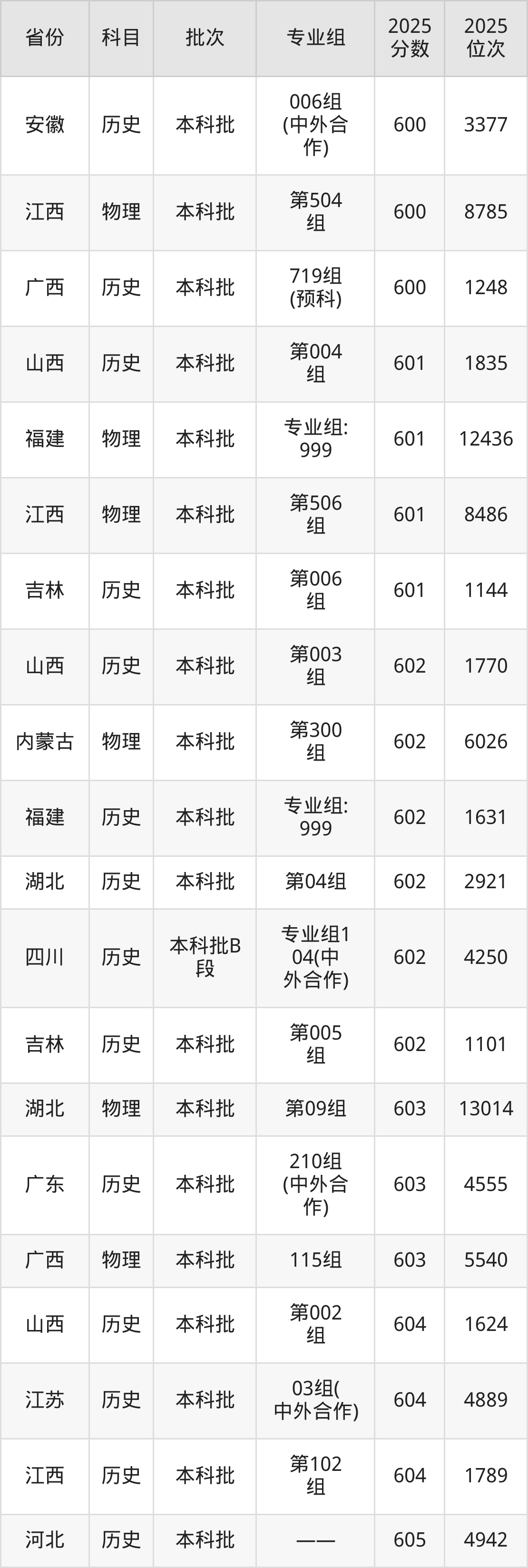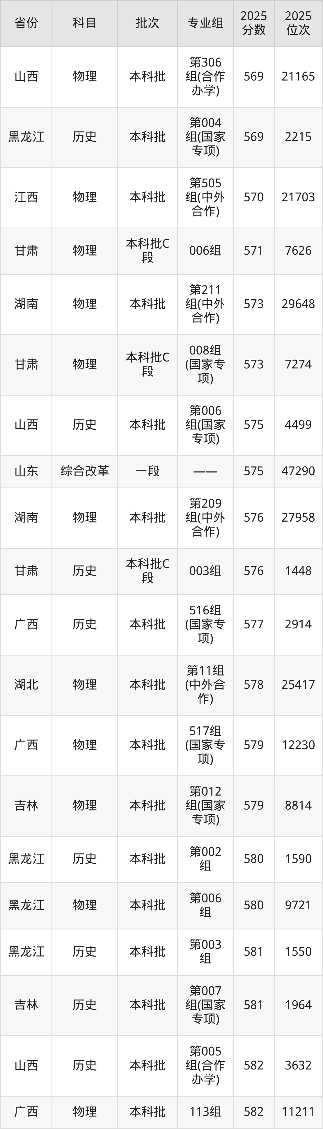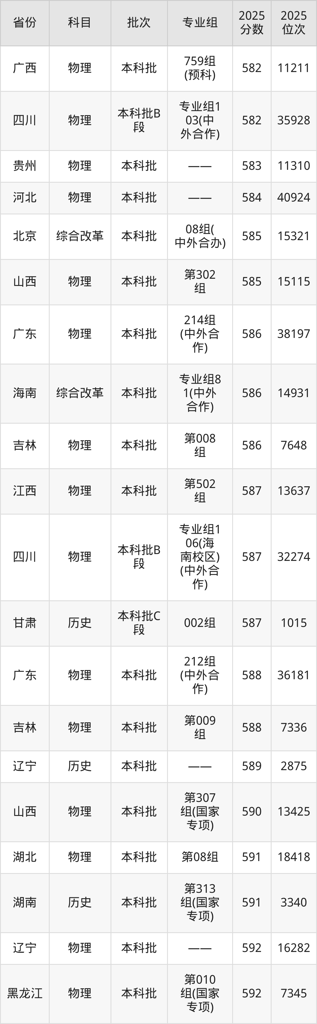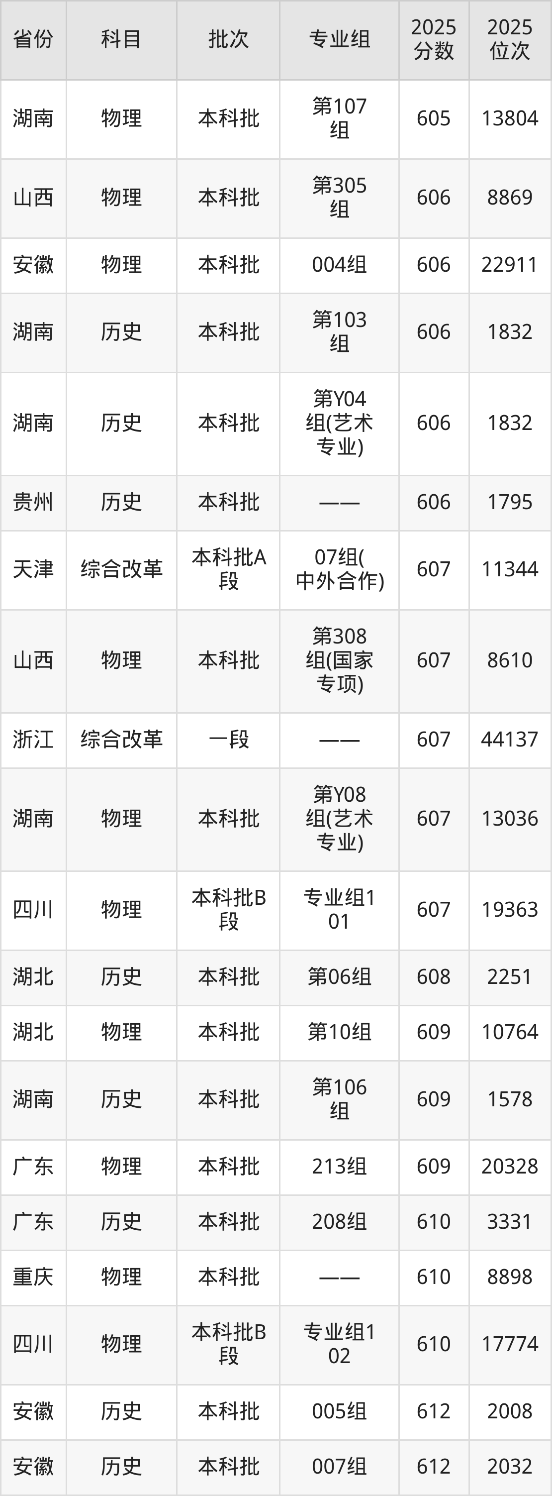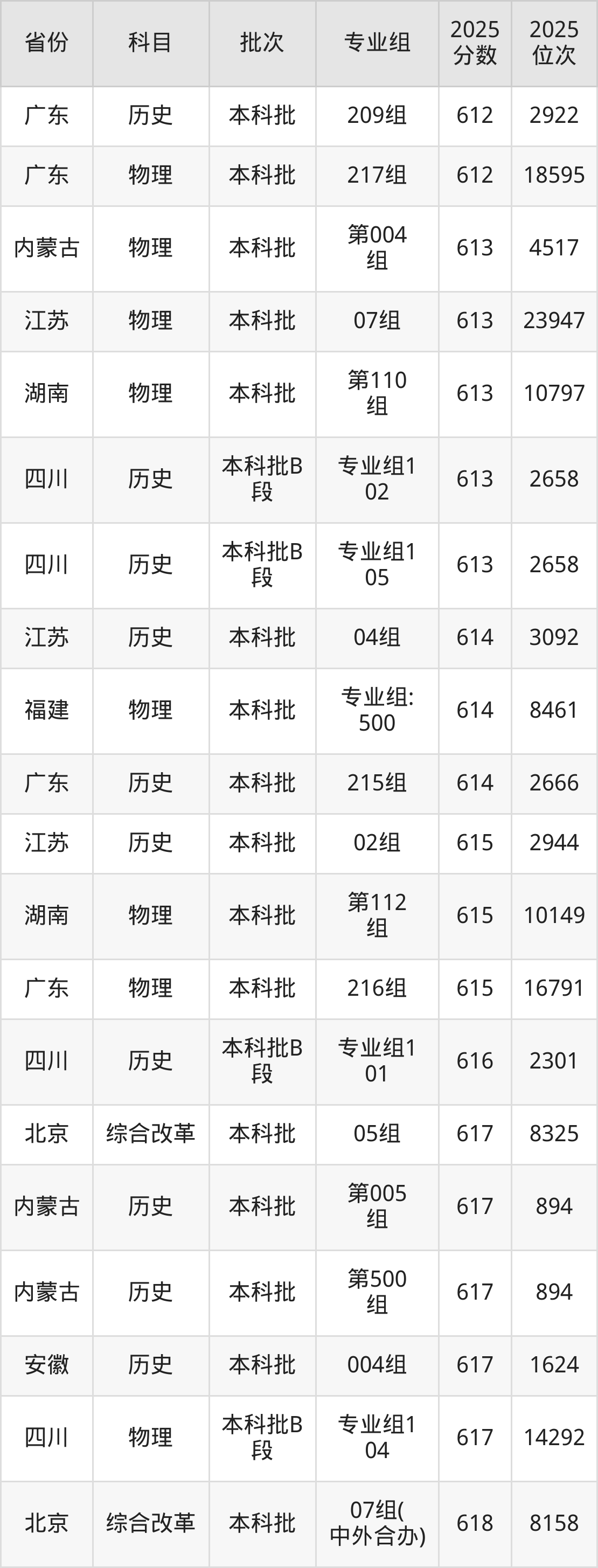 2025年中国传媒大学在各省普通批录取分数线一览表: