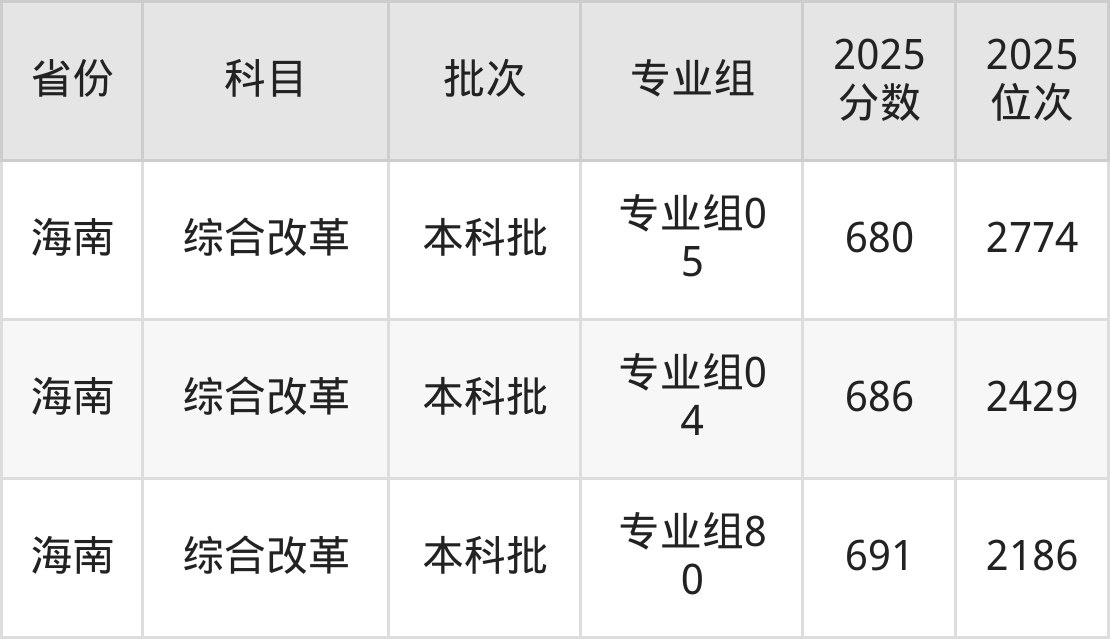最高录取分数线是691分,对应位次是2186名,招生地区为海南。