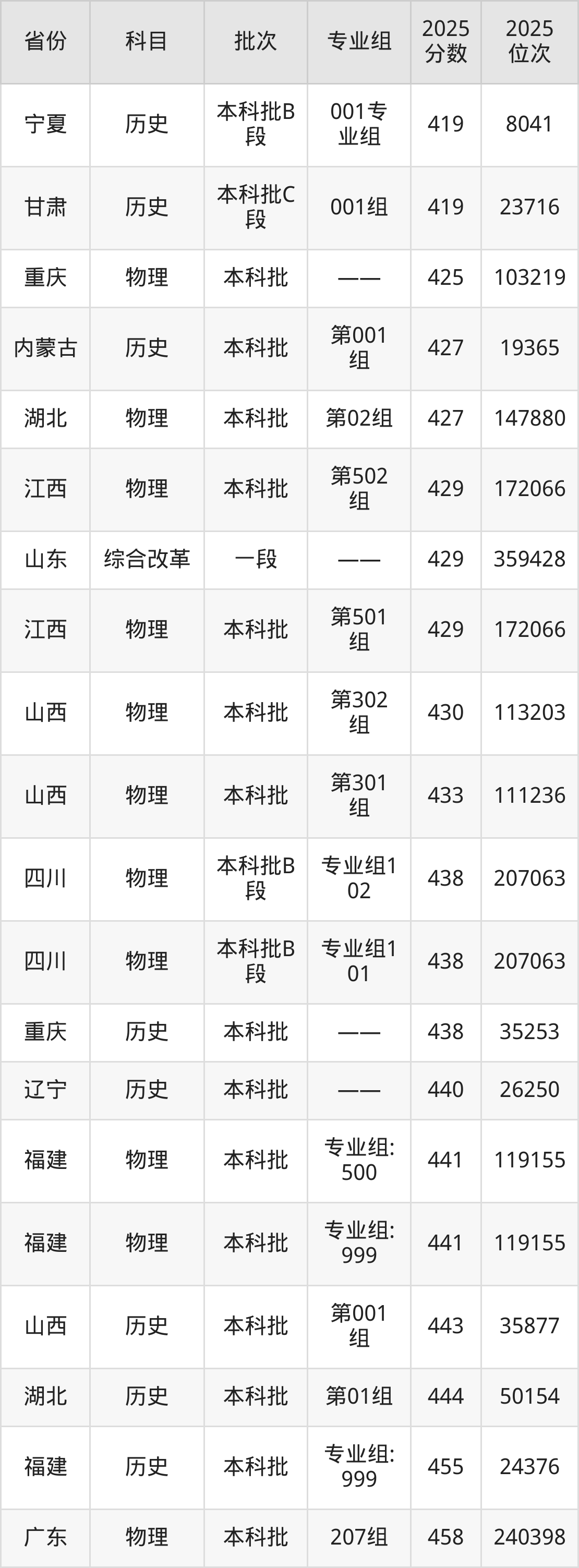 2025年福州外语外贸学院在各省物理类的录取分数线位于340分-490分之间。