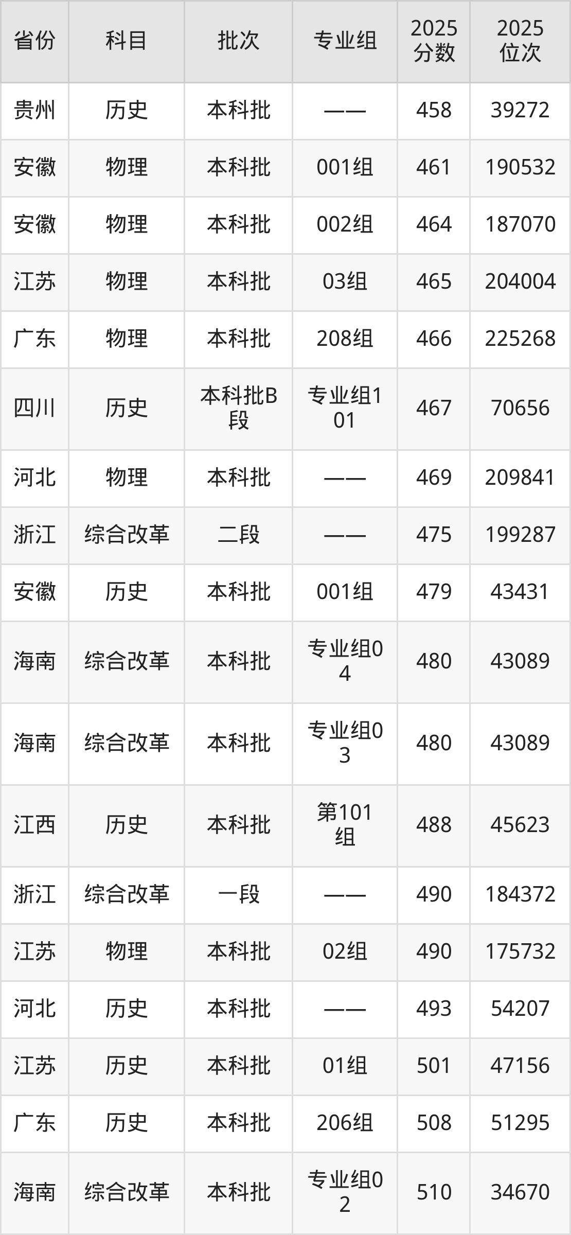 最高录取分数线是490分,对应位次是175732名,招生地区为江苏。
