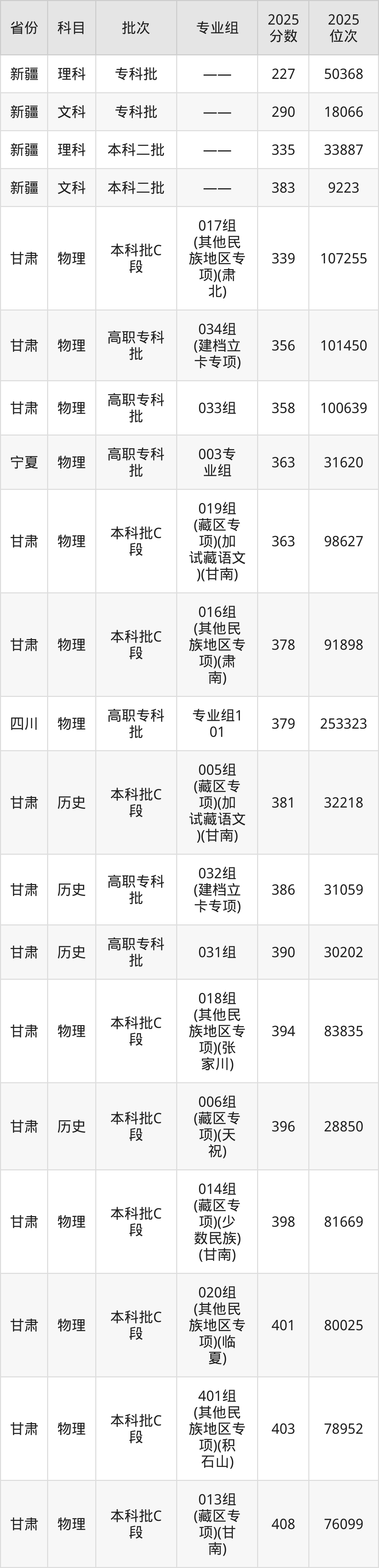 最低录取分数线是227分,对应位次是50368名,招生地区为新疆;