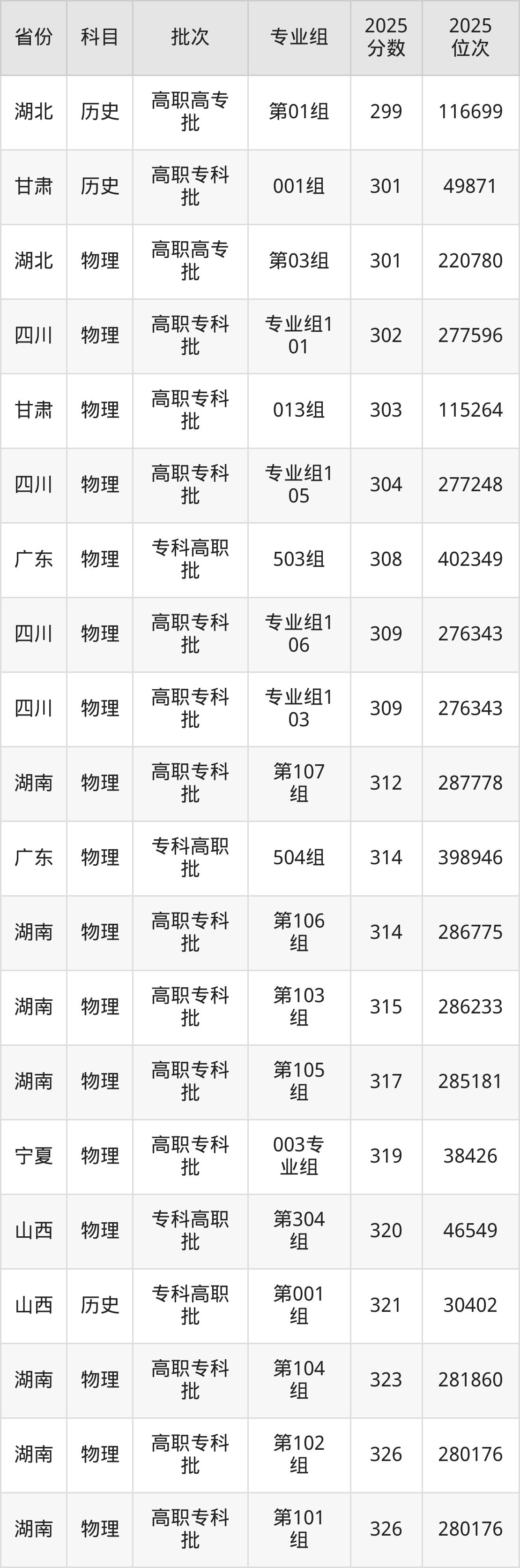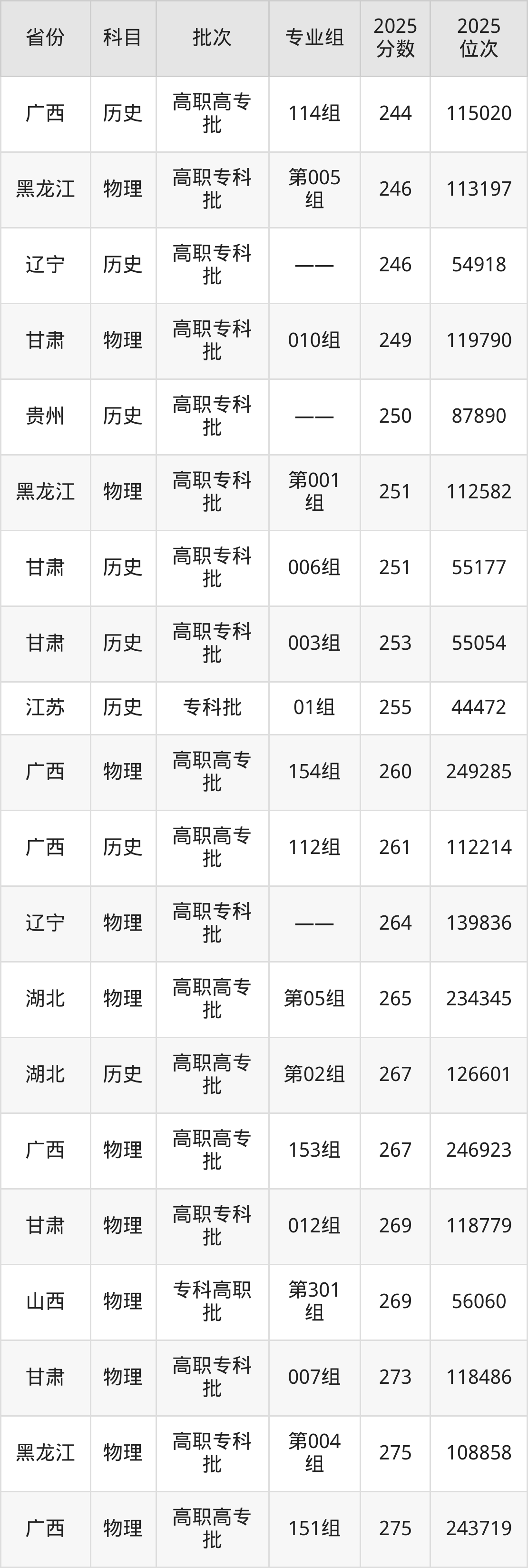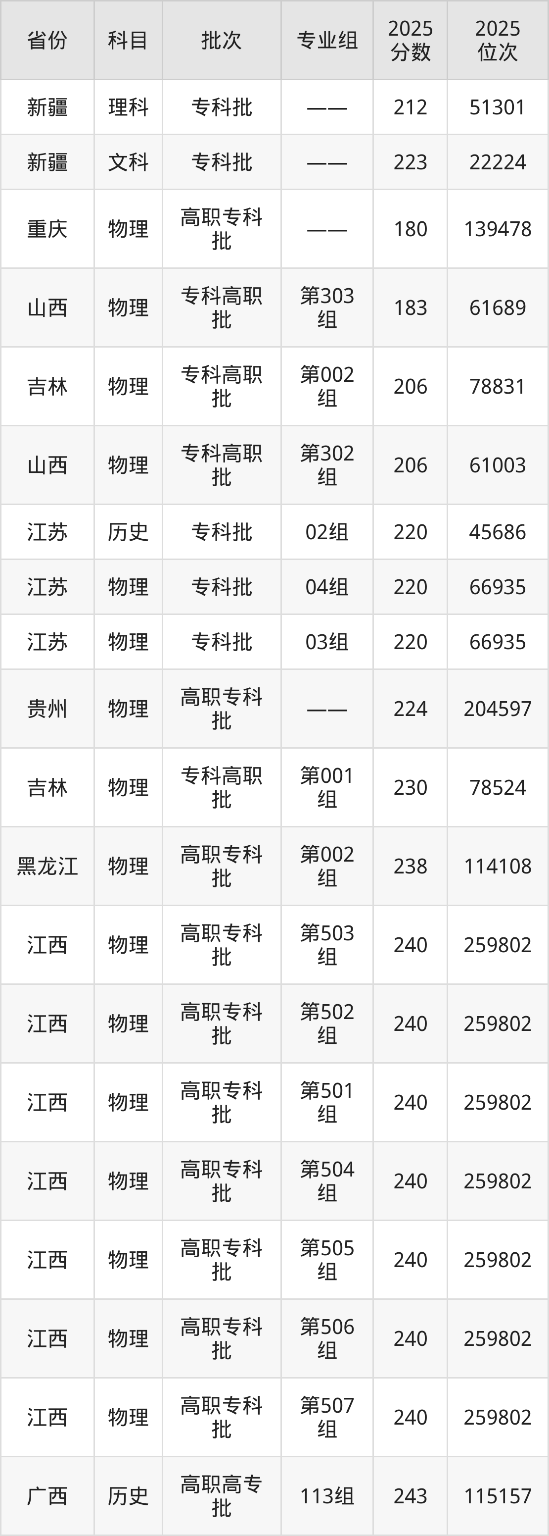 2025年喀什理工职业技术学院在各省普通批录取分数线一览表: