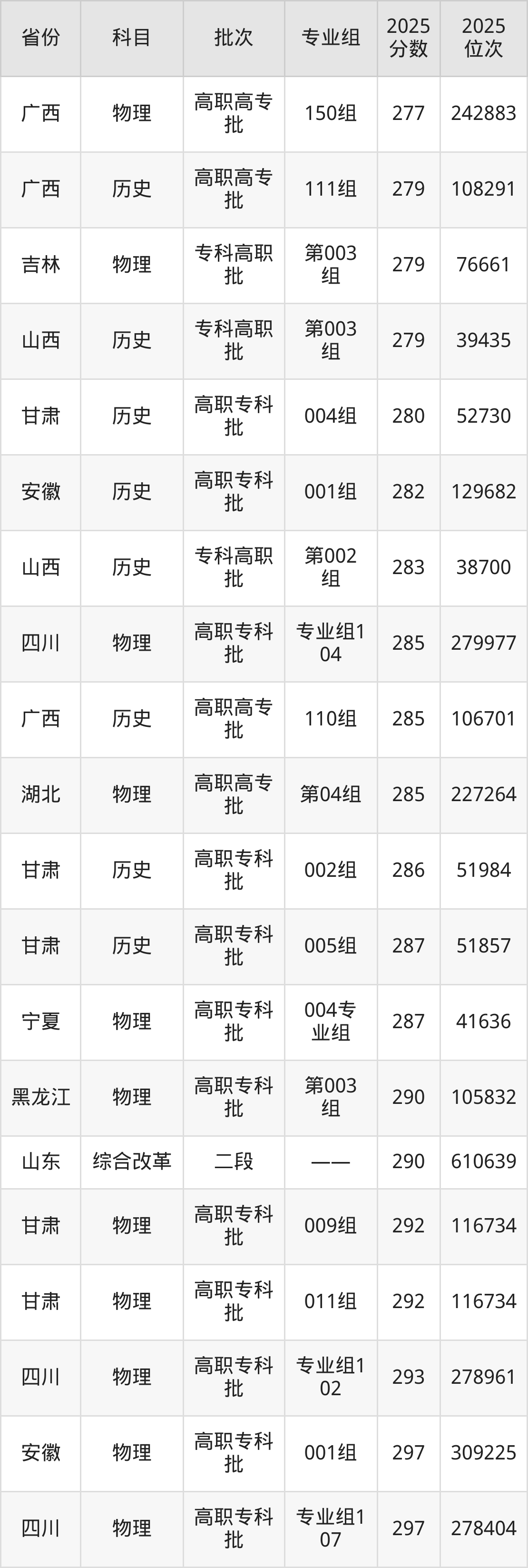 2025年喀什理工职业技术学院在各省物理类和理科的录取分数线位于180分-340分之间。