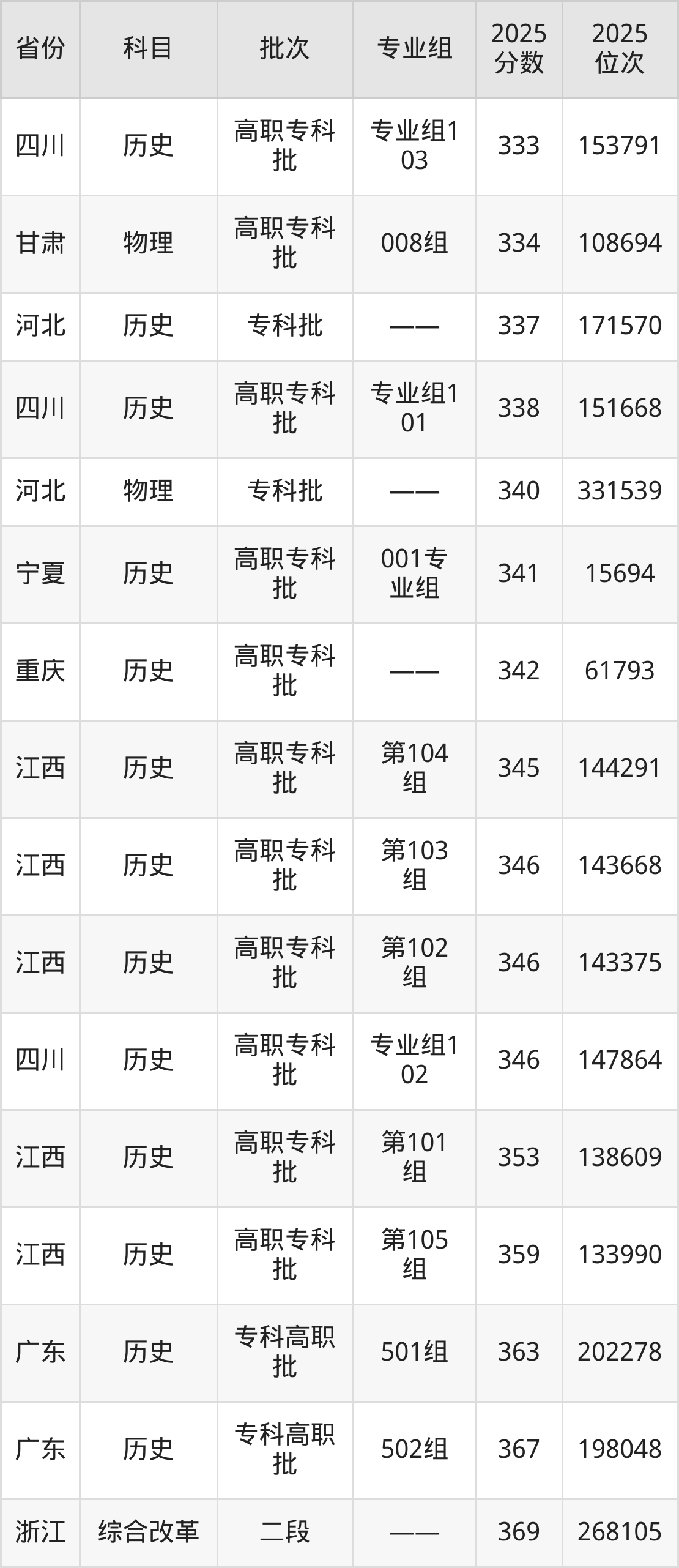 最高录取分数线是369分,对应位次是268105名,招生地区为浙江。