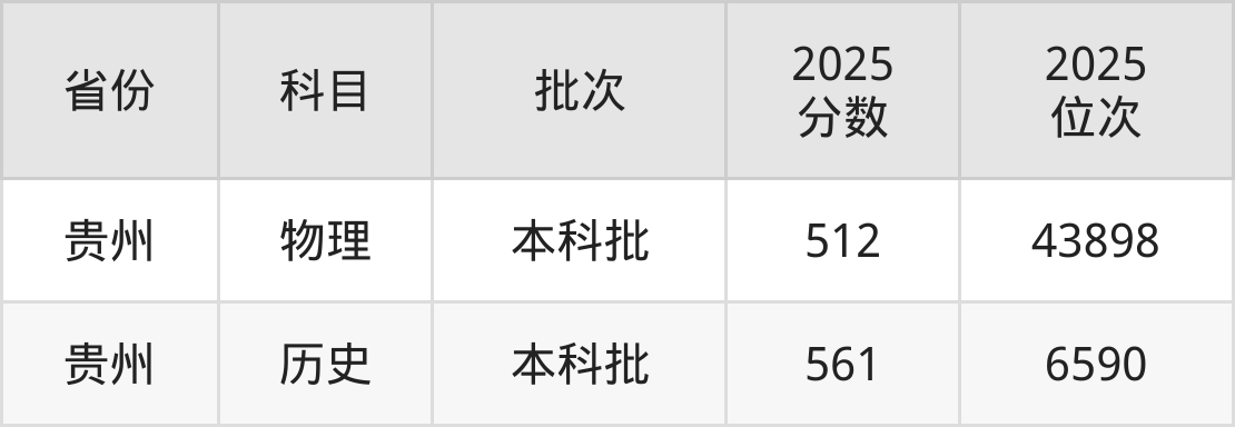 最低录取分数线是512分,对应位次是43898名,招生地区为贵州。