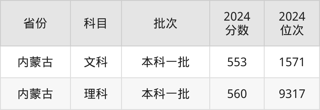 最低录取分数线是553分,对应位次是1571名,招生地区为内蒙古。