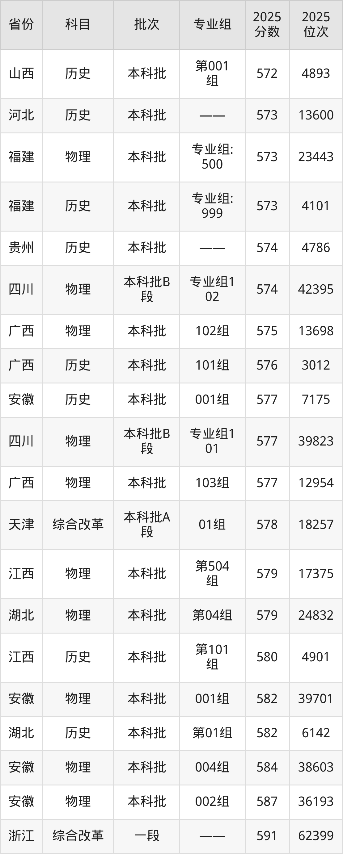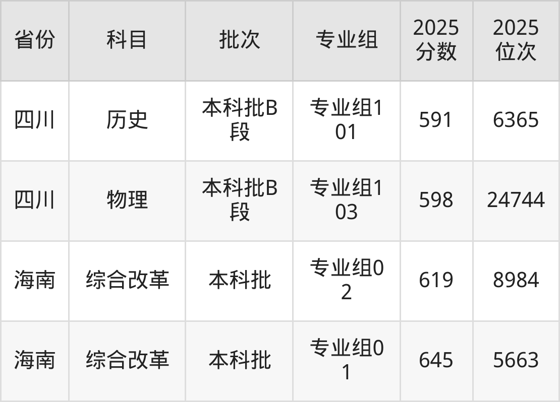 最高录取分数线是598分,对应位次是24744名,招生地区为四川。