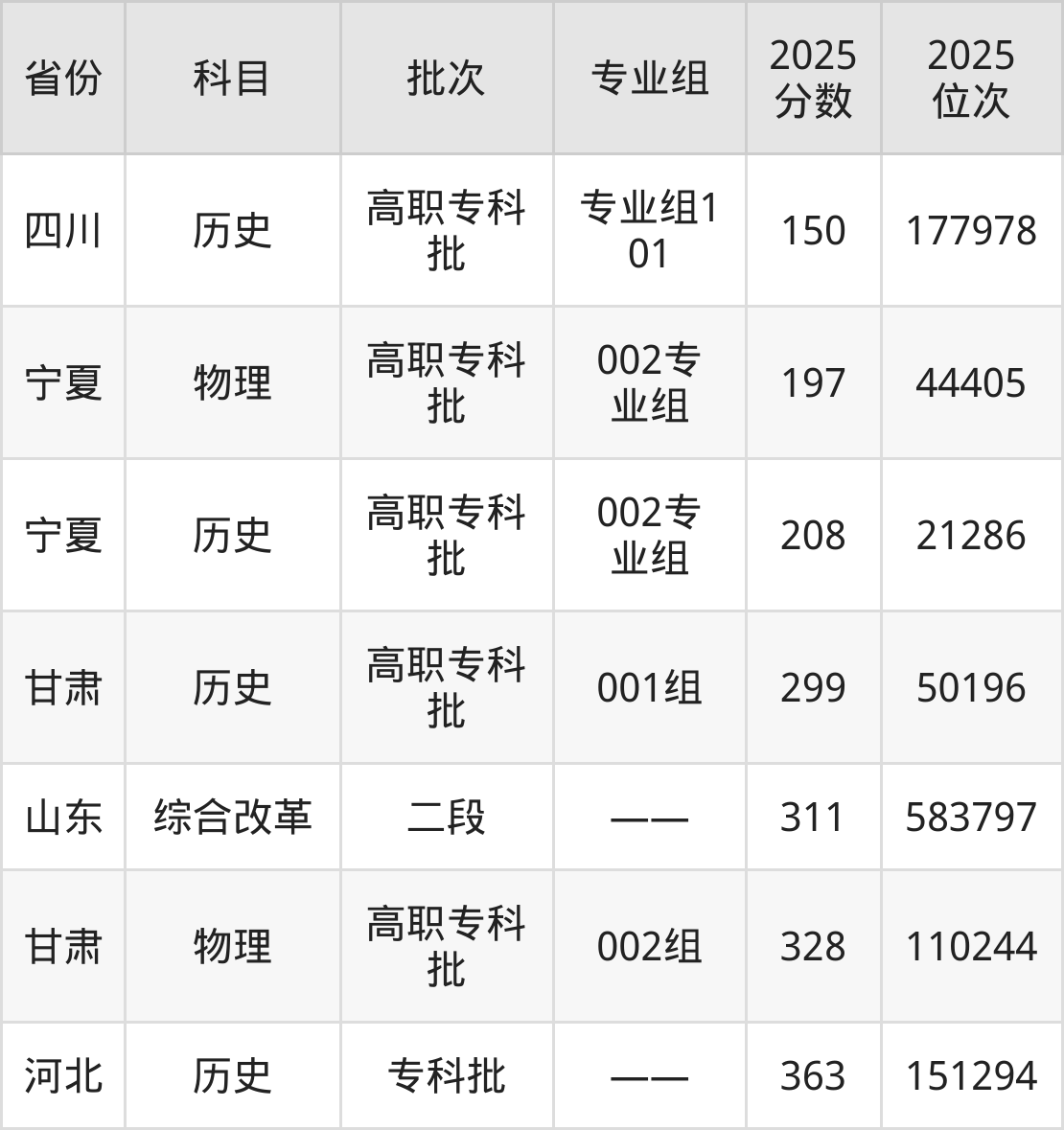 最低录取分数线是150分,对应位次是177978名,招生地区为四川;