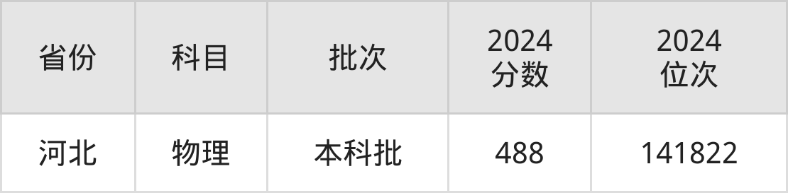 最低录取分数线是488分,对应位次是141822名,招生地区为河北。