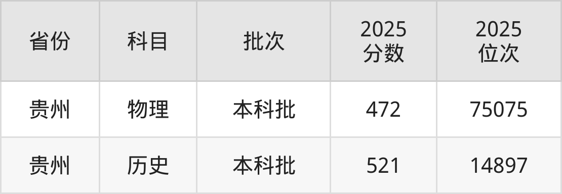 2025年贵州师范学院(国家专项计划)在各省物理类的录取分数线为472分。