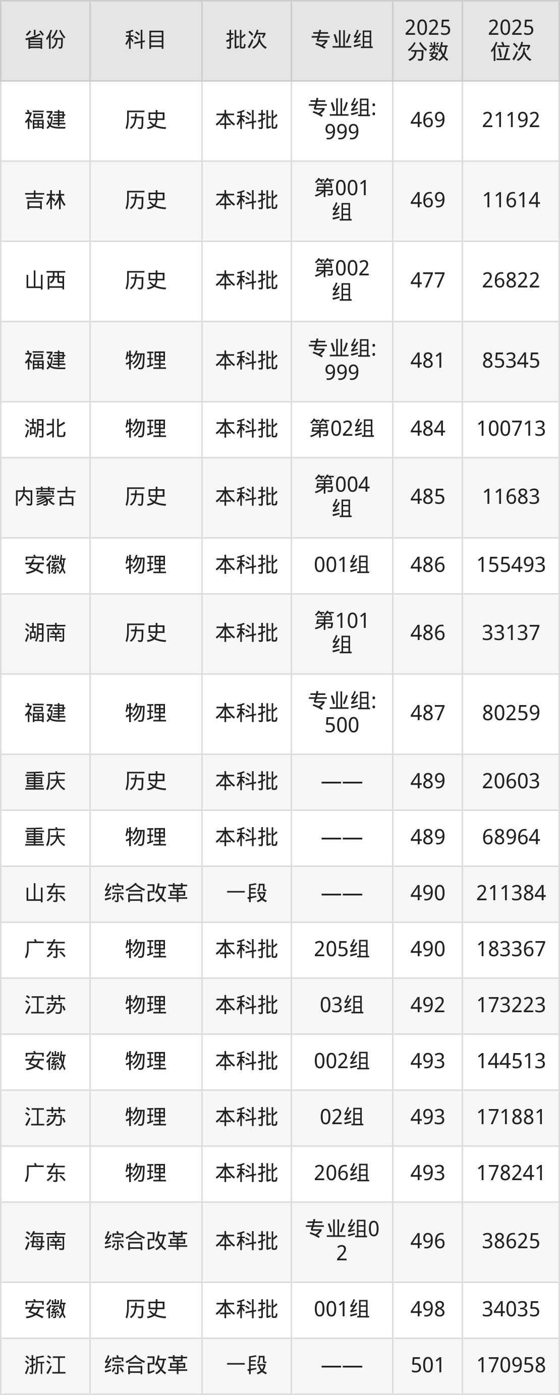 最高录取分数线是503分,对应位次是155469名,招生地区为河北。